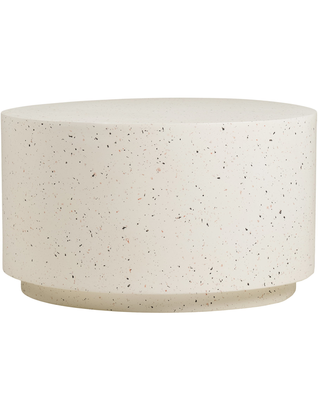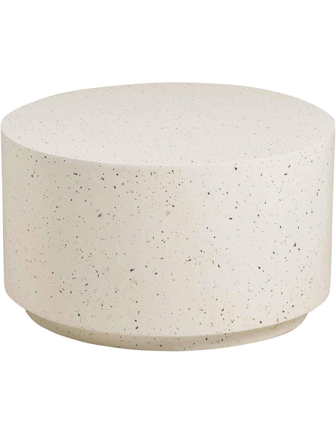 Sa finition blanc cassé ponctuée de fines inclusions évoque l’esthétique du terrazzo. Elle capte la lumière et crée un jeu de matière subtil, parfait pour dynamiser un salon épuré.