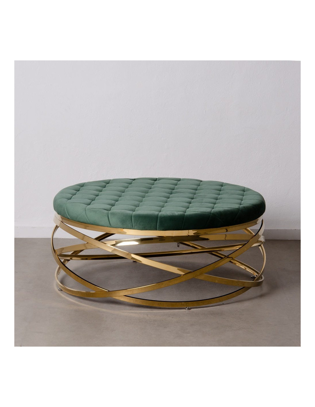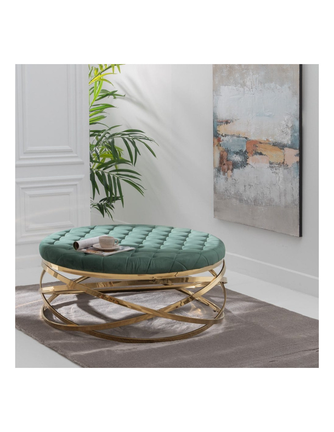 Table basse Ronde en Velours Vert Métal Doré Gabbie