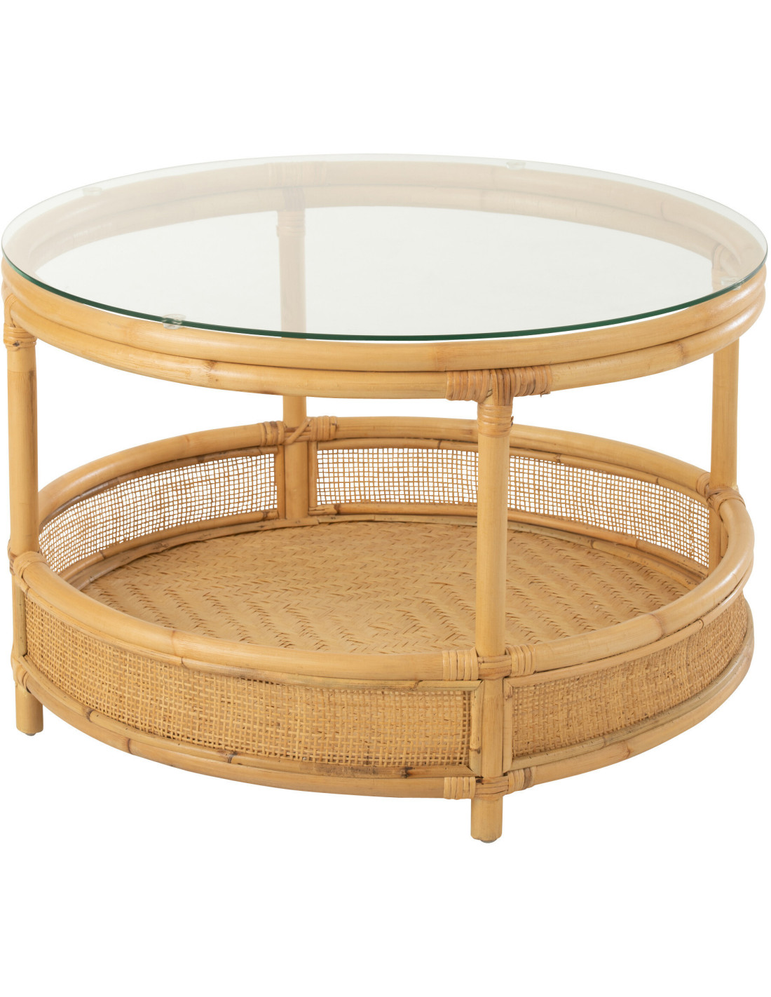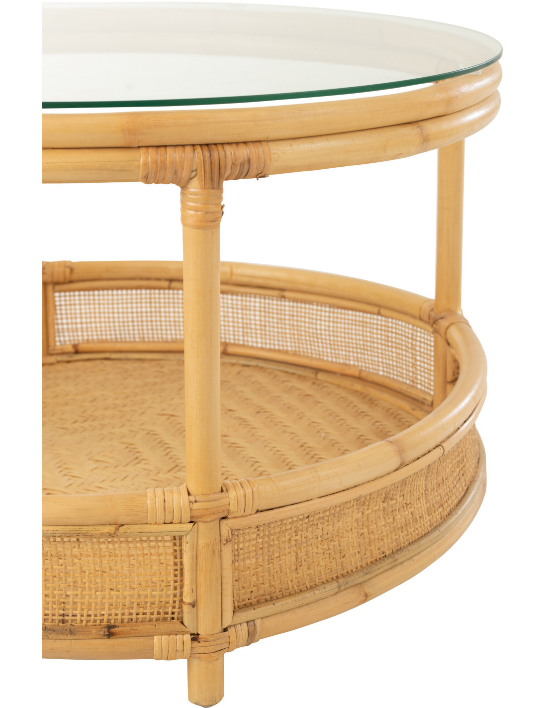 Table basse Ronde Jovelyne en Rotin Naturel Verre - 2
