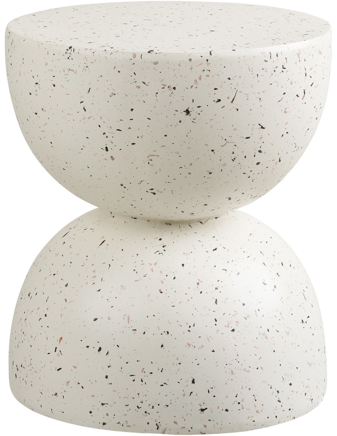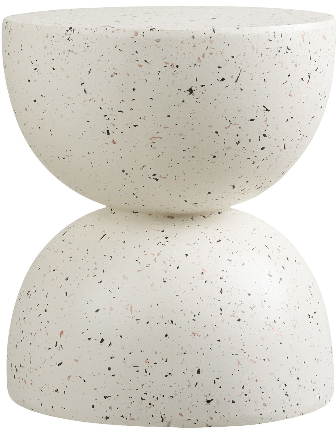 Sa teinte écrue, légèrement chaude, est animée par de fines inclusions sombres qui évoquent un terrazzo discret, presque organique. Rien d'ostentatoire ici. Les éclats restent fins, irréguliers, comme intégrés à la matière elle-même plutôt que déposés en surface. Le rendu évoque une pierre travaillée, adoucie par le temps.