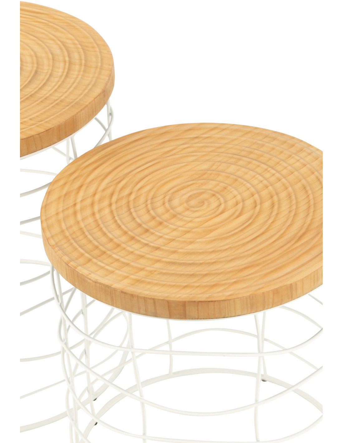 Table d'appoint bord de mer Ronde en Métal Blanc Bois d'épicéa Naturel Séliana (Lot de 2) - 2
