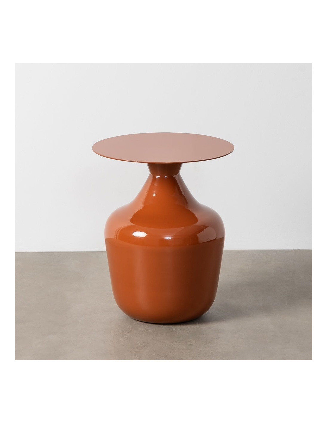 Table d'appoint ronde 38 cm en métal terracotta. Design chic et chaleureux. Couleur authentique et intemporelle.