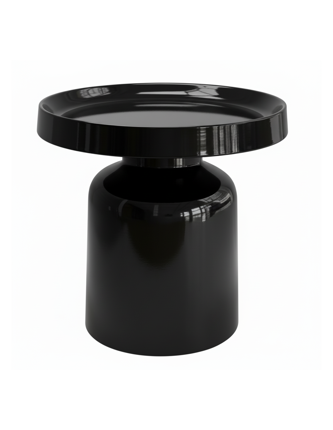 Table d'appoint design minimaliste Ronde 43 cm Métal Noir Brillant Pawn