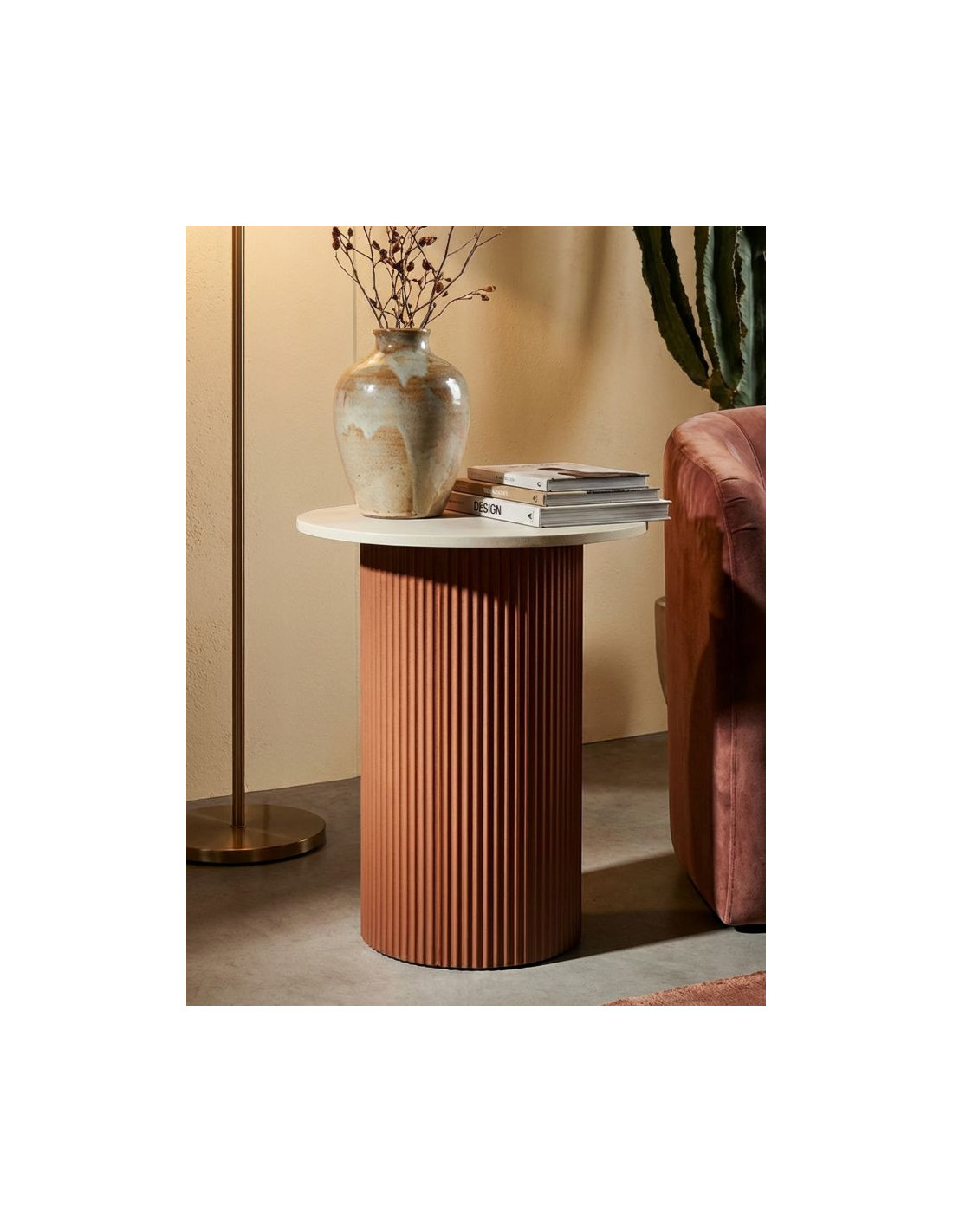 Table d'appoint design Organique Métal Rouge Bois MDF Blanc Marbre artificiel Frankfurt