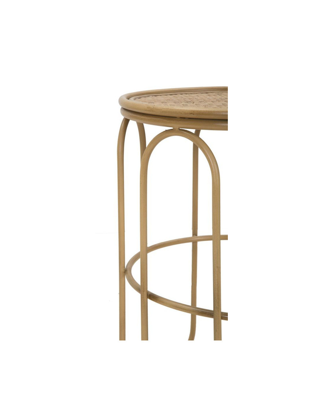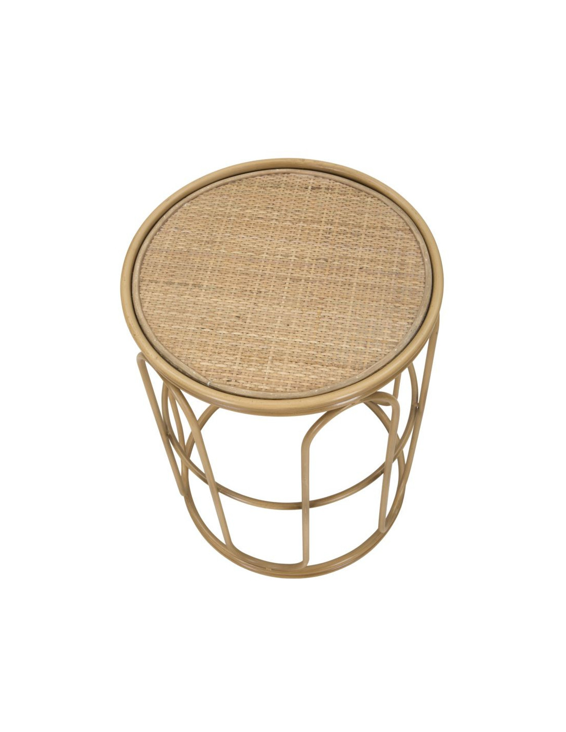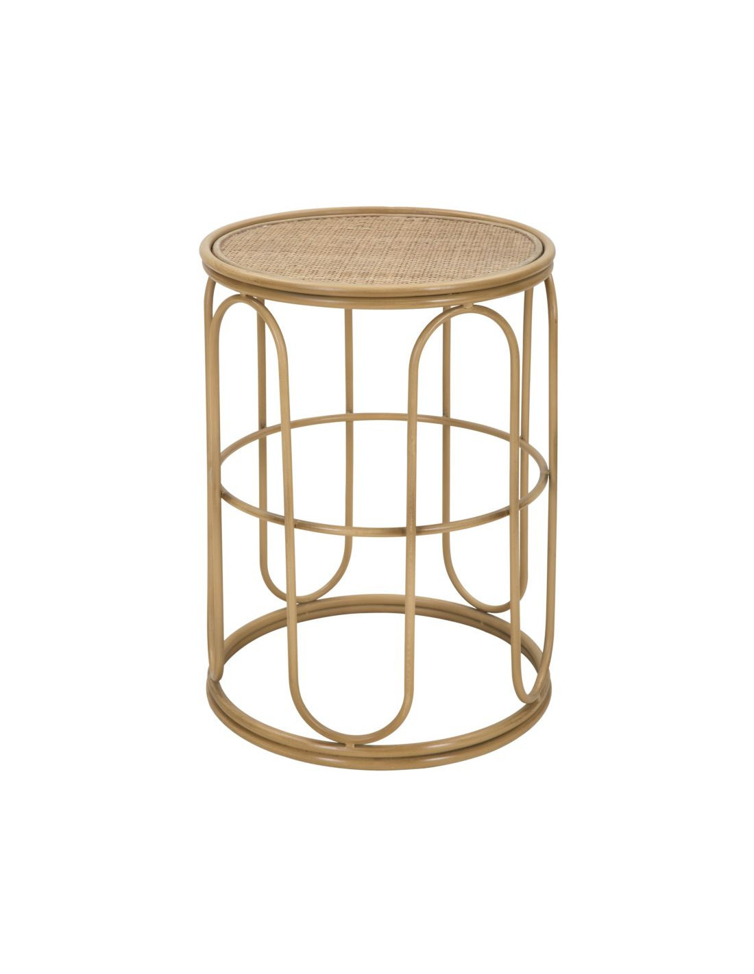Table d'appoint design rétro chic Ronde Rotin Naturel Tressé Métal Samui 40 cm