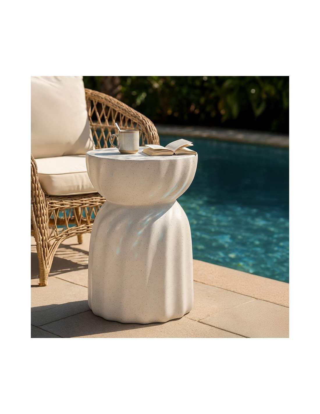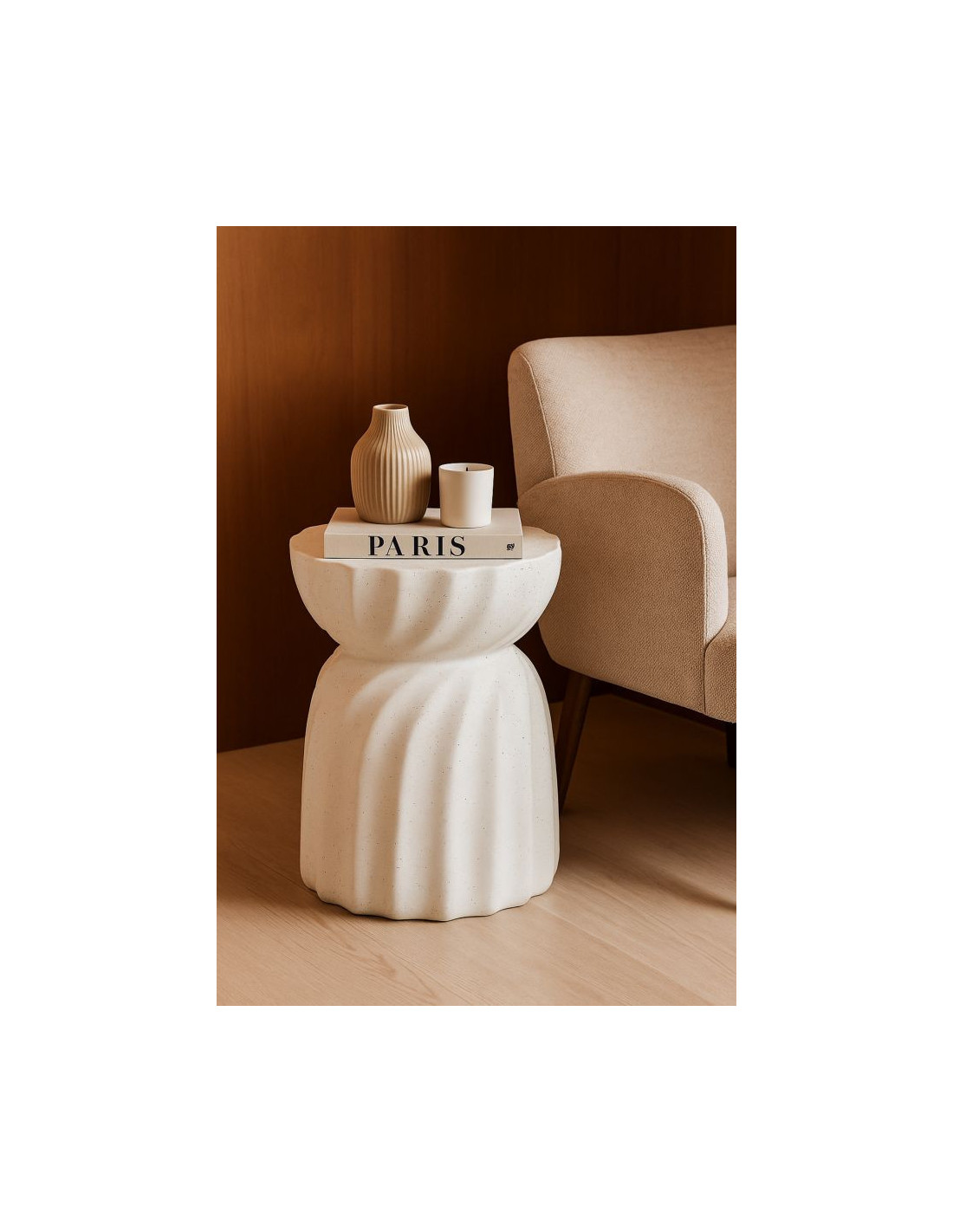 Table d'appoint design Ronde 36 cm Oxyde de magnésium Blanc crème Twisty