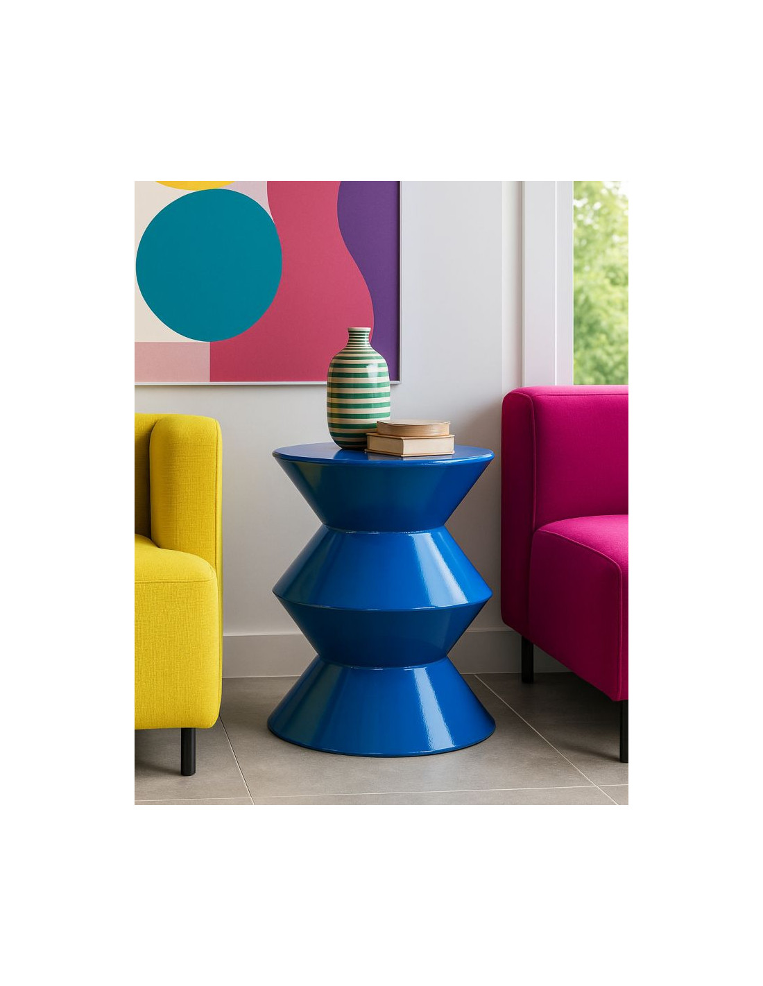 Table d'appoint design Ronde 37 cm Métal Bleu Zag