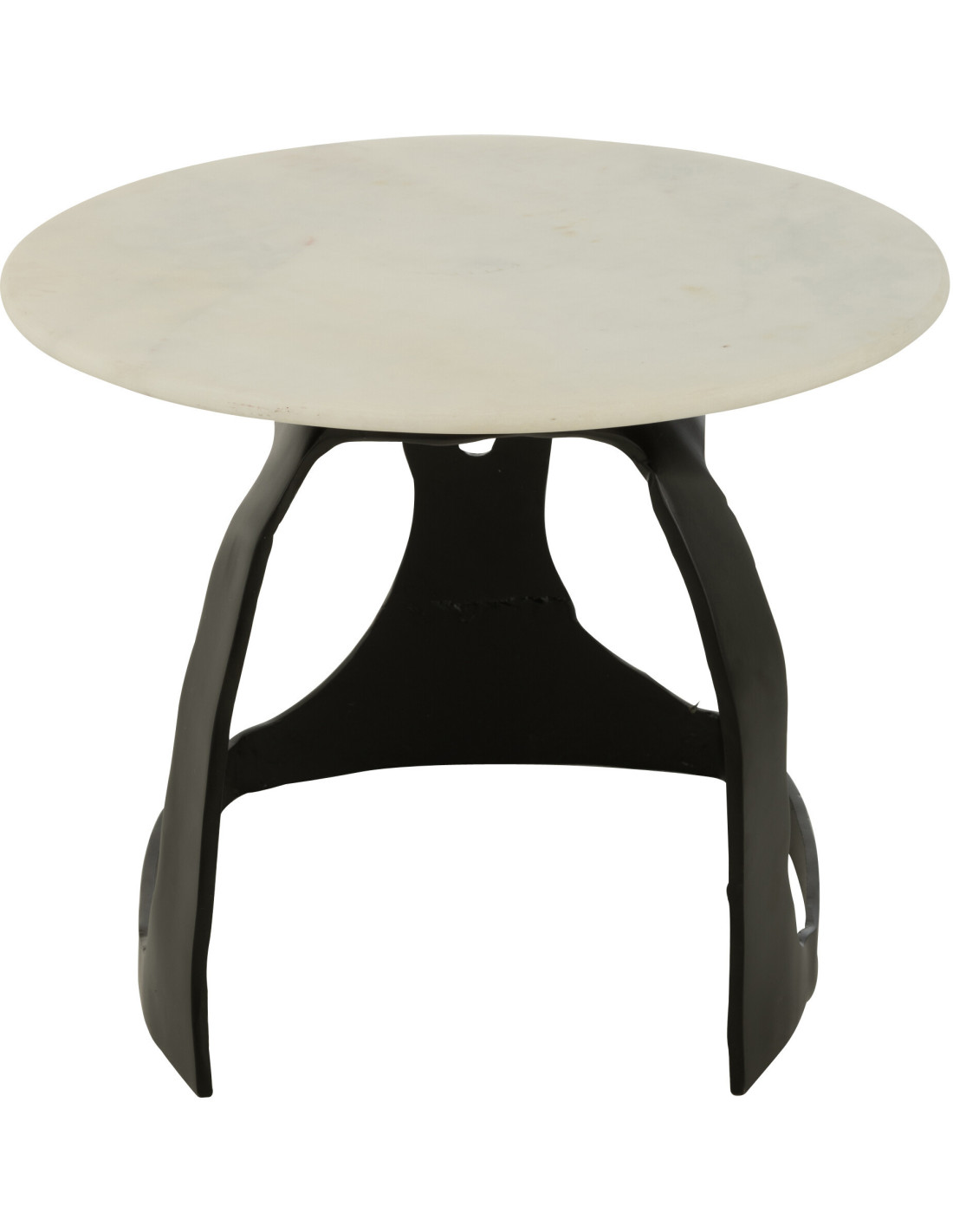 Table d'appoint design Ronde 50 cm en Marbre Blanc Métal Noir Deossa