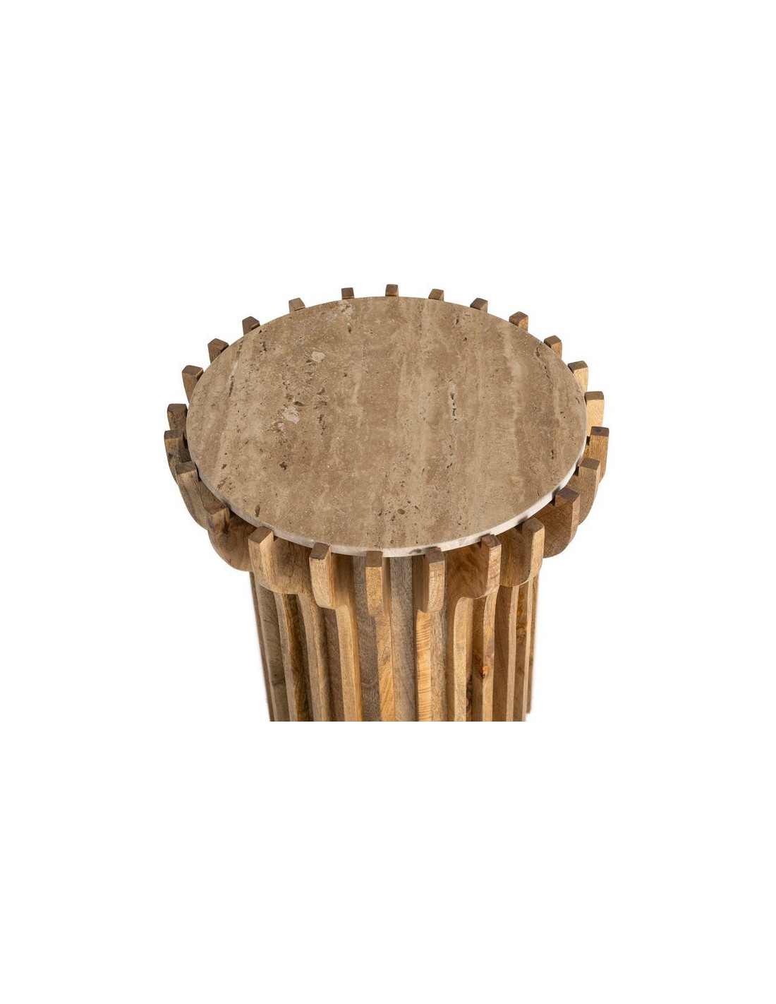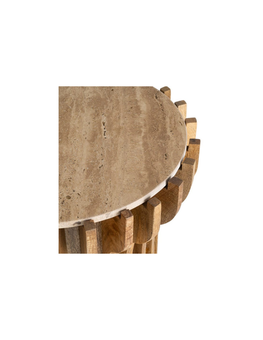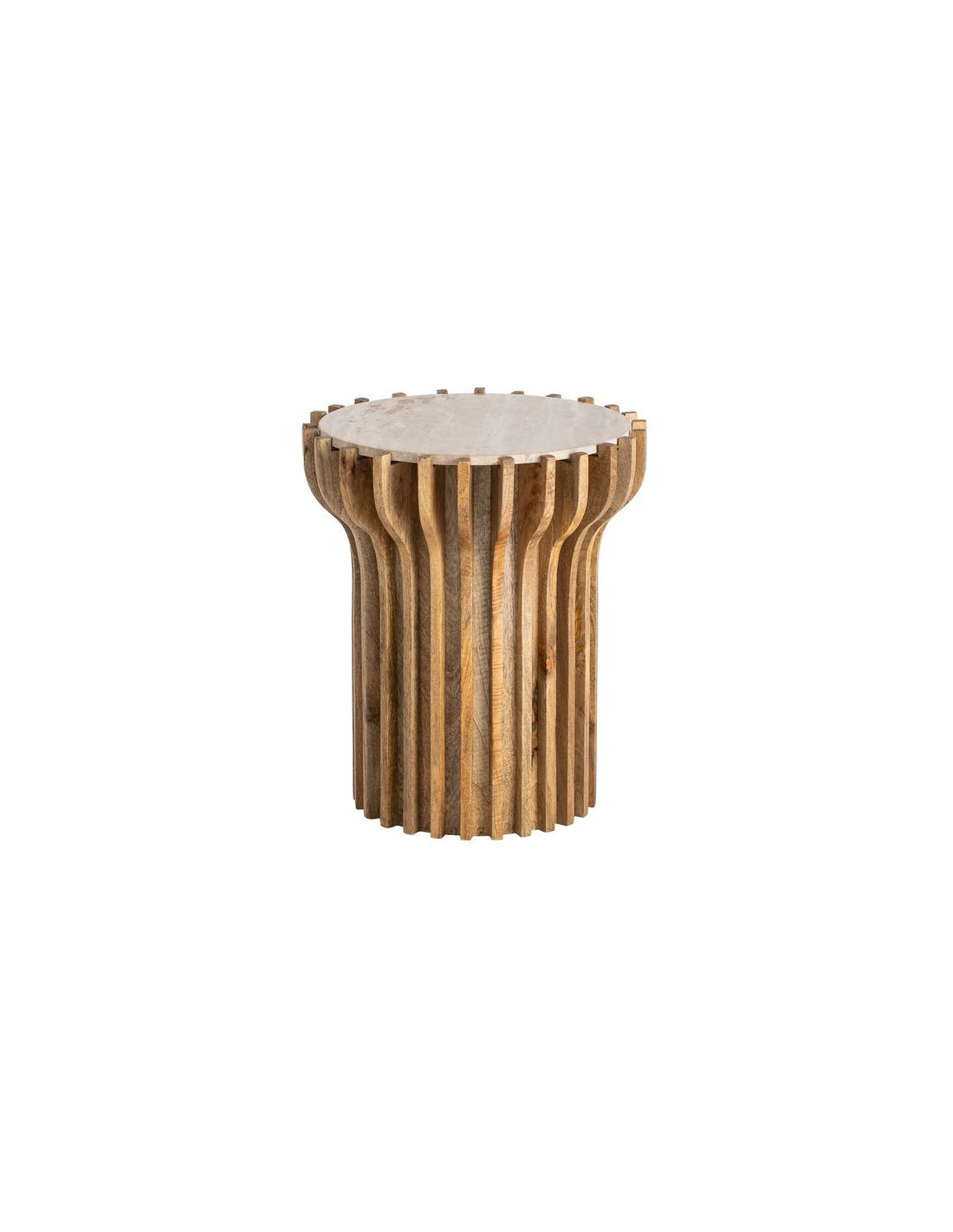 Table d'appoint design Ronde 53 cm Marbre Beige Bois de manguier Naturel Stréo