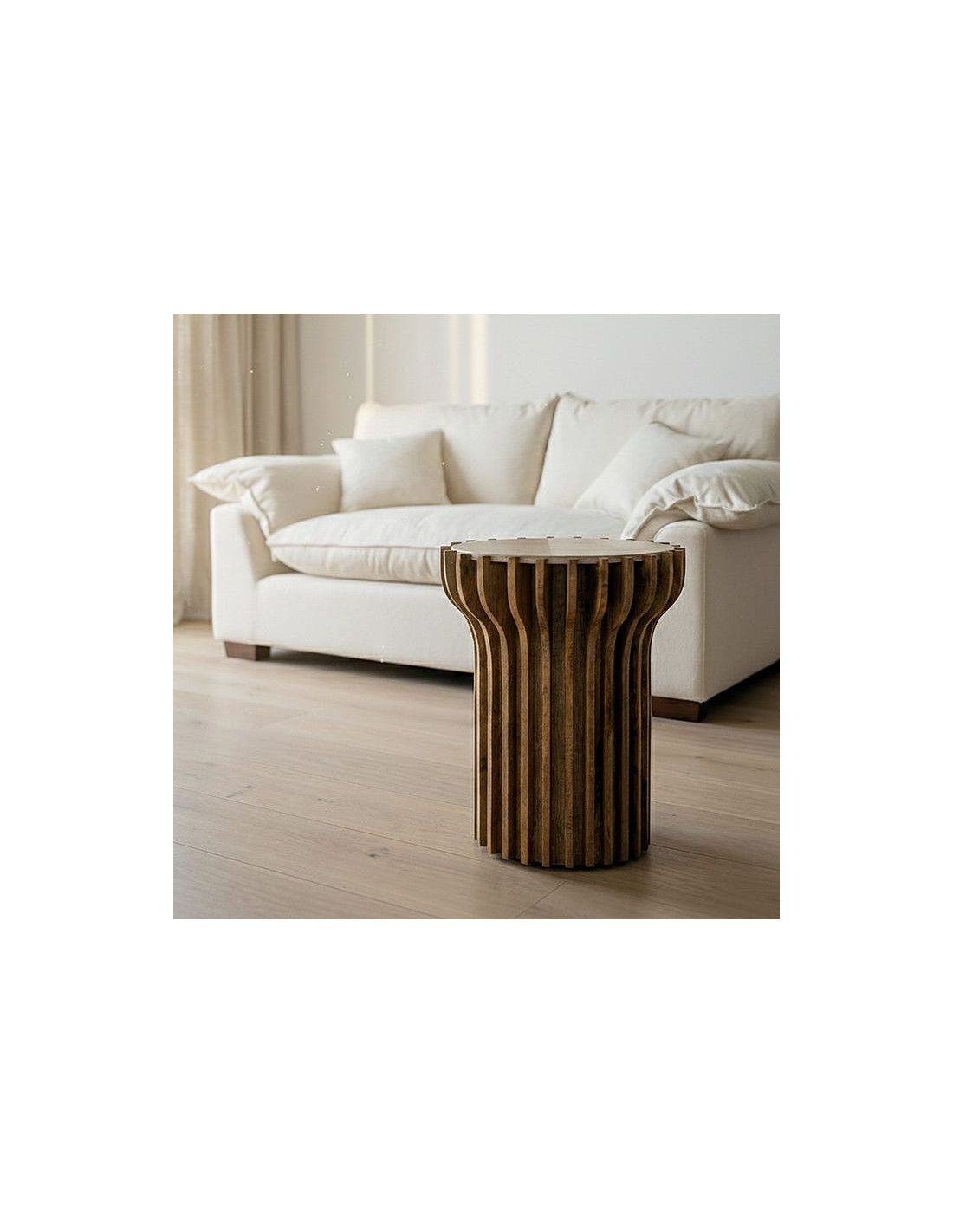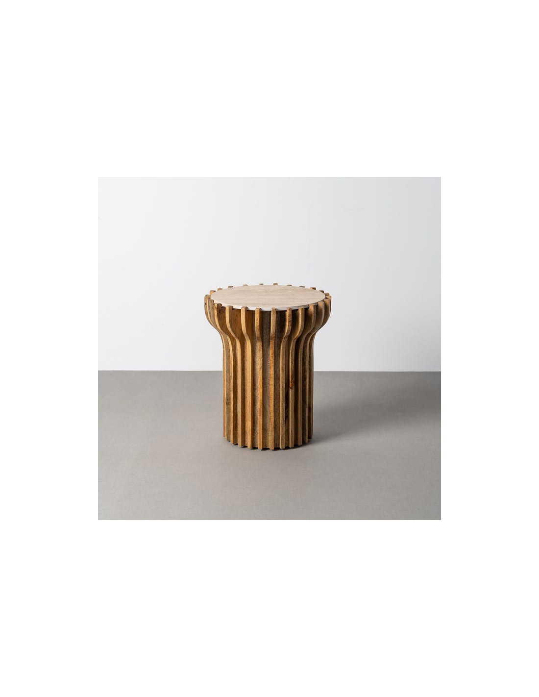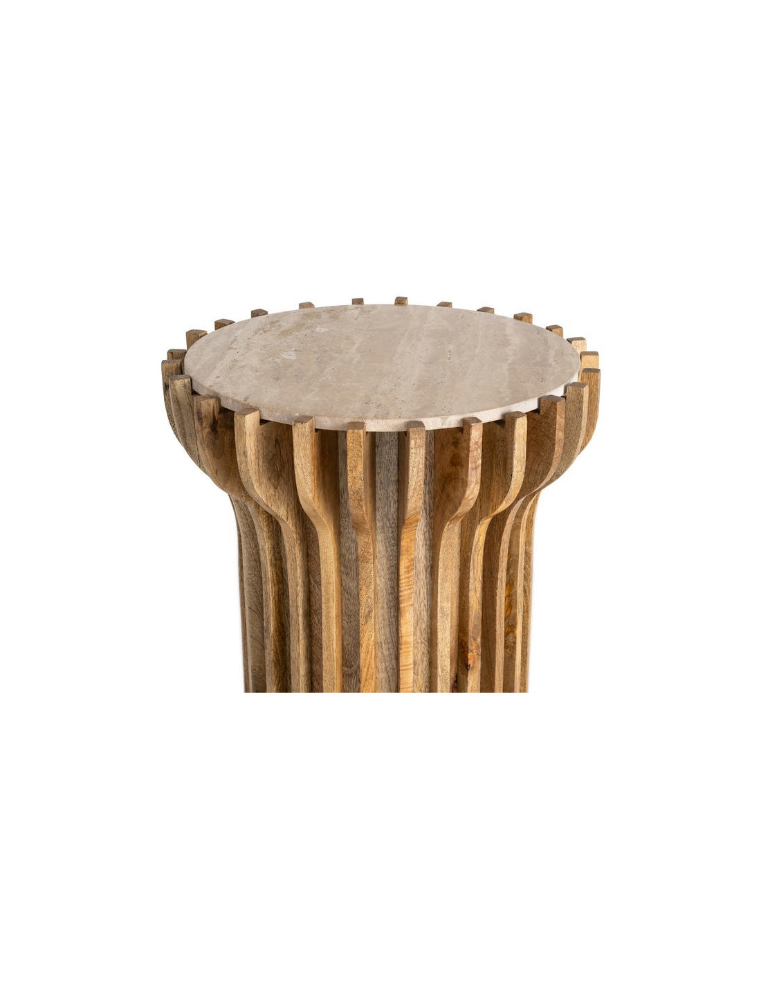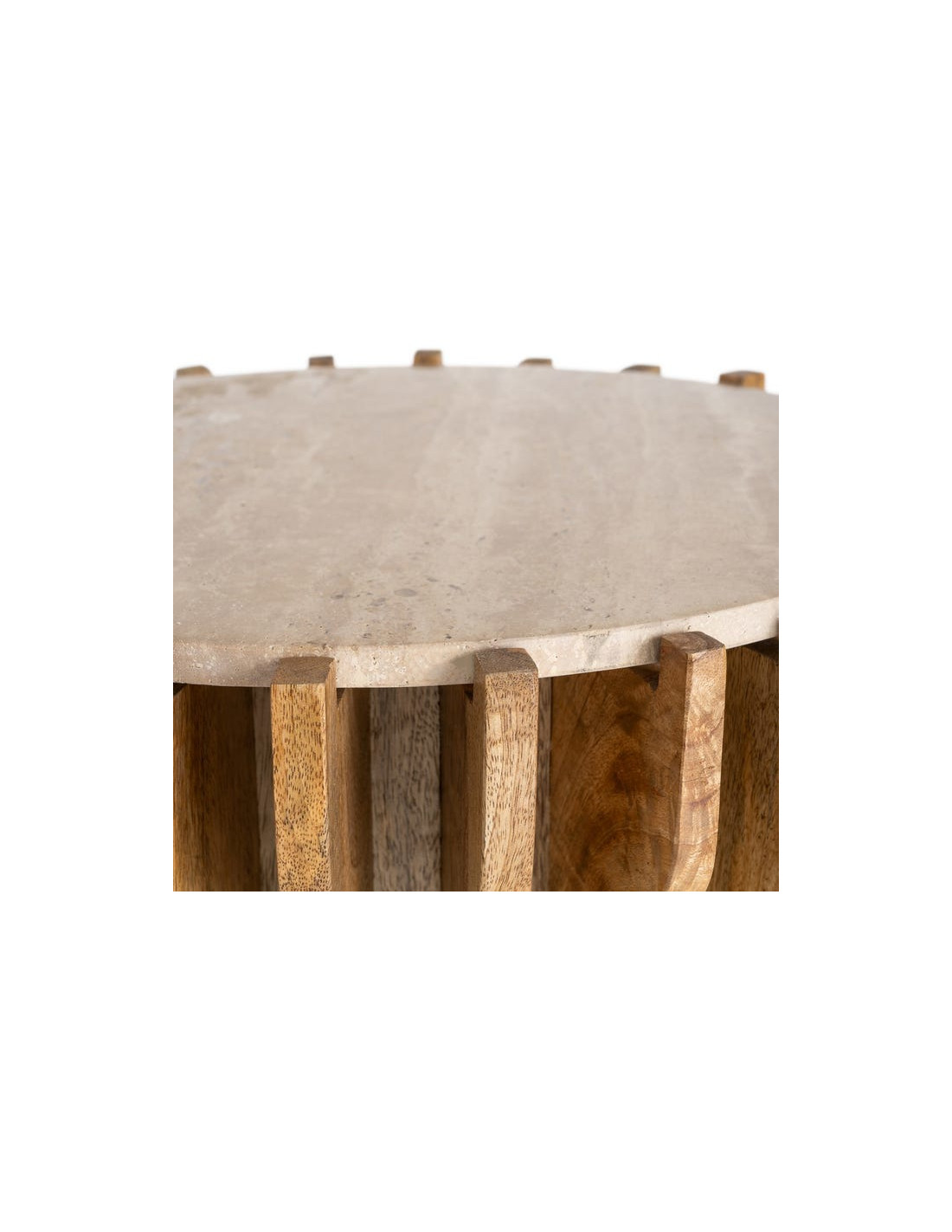 Table d'appoint design Ronde 53 cm Marbre Beige Bois de manguier Naturel Stréo