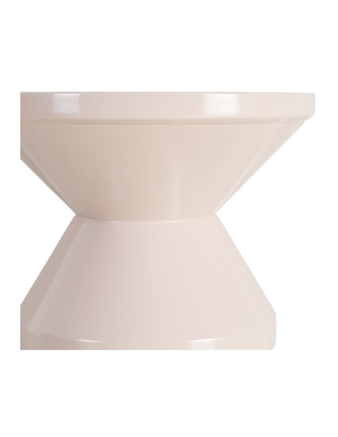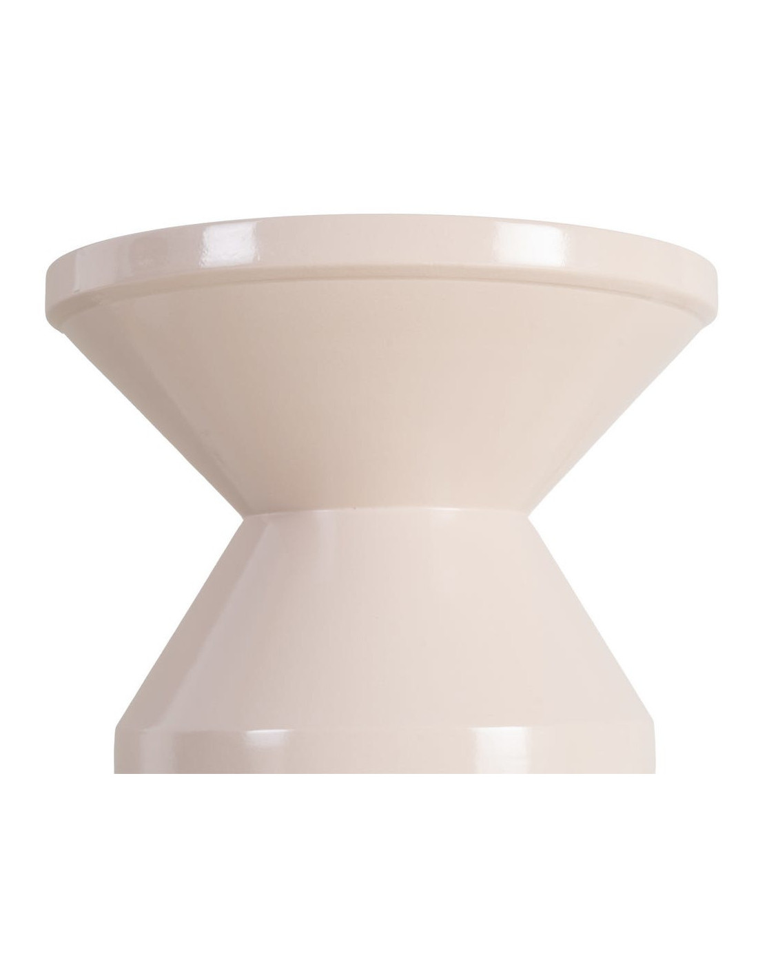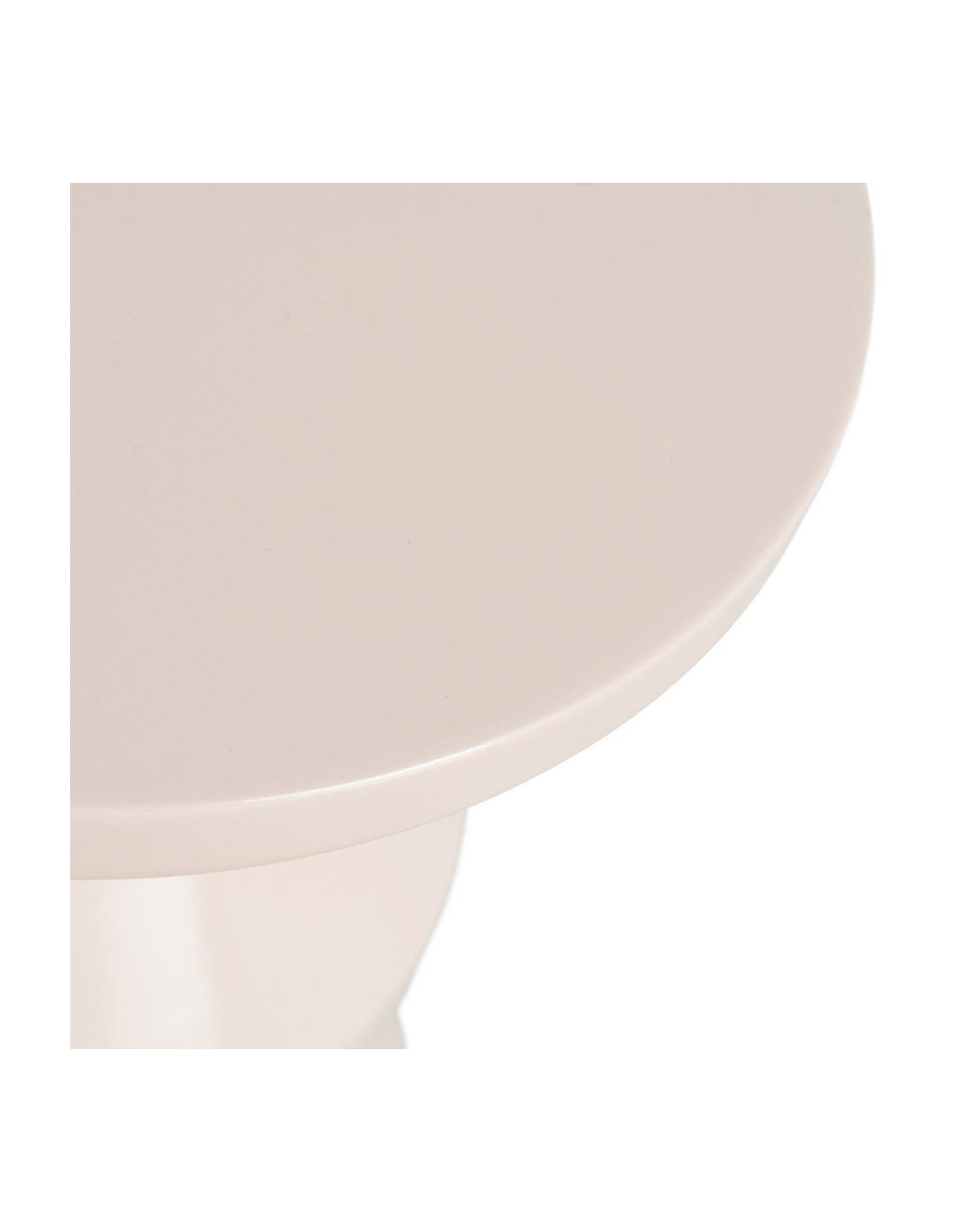 Table d'appoint ronde 33 cm en métal blanc cassé brillant. Design Totem graphique. Style minimaliste affirmé.