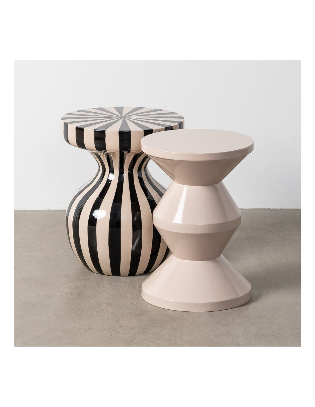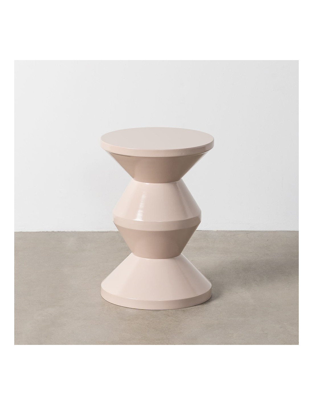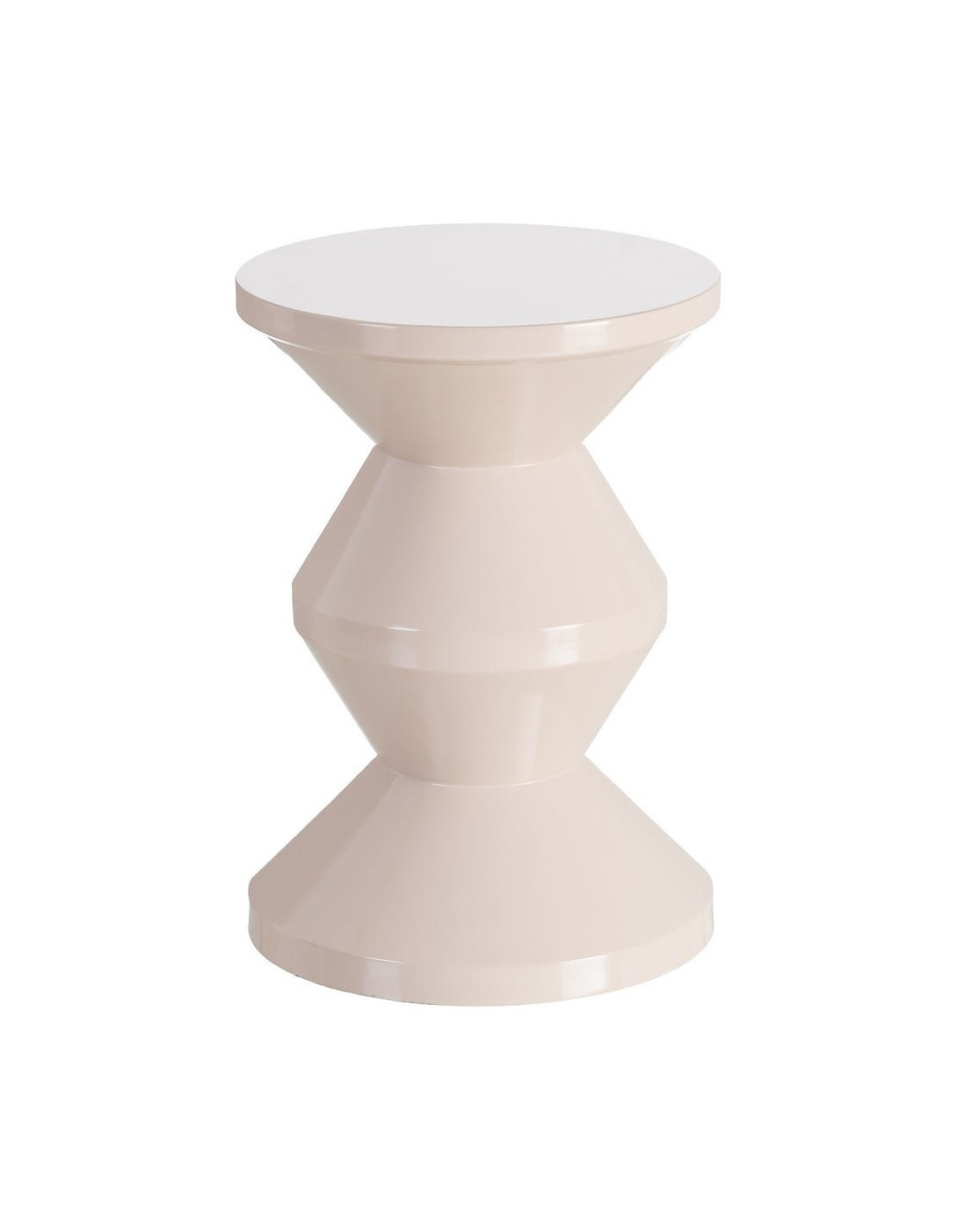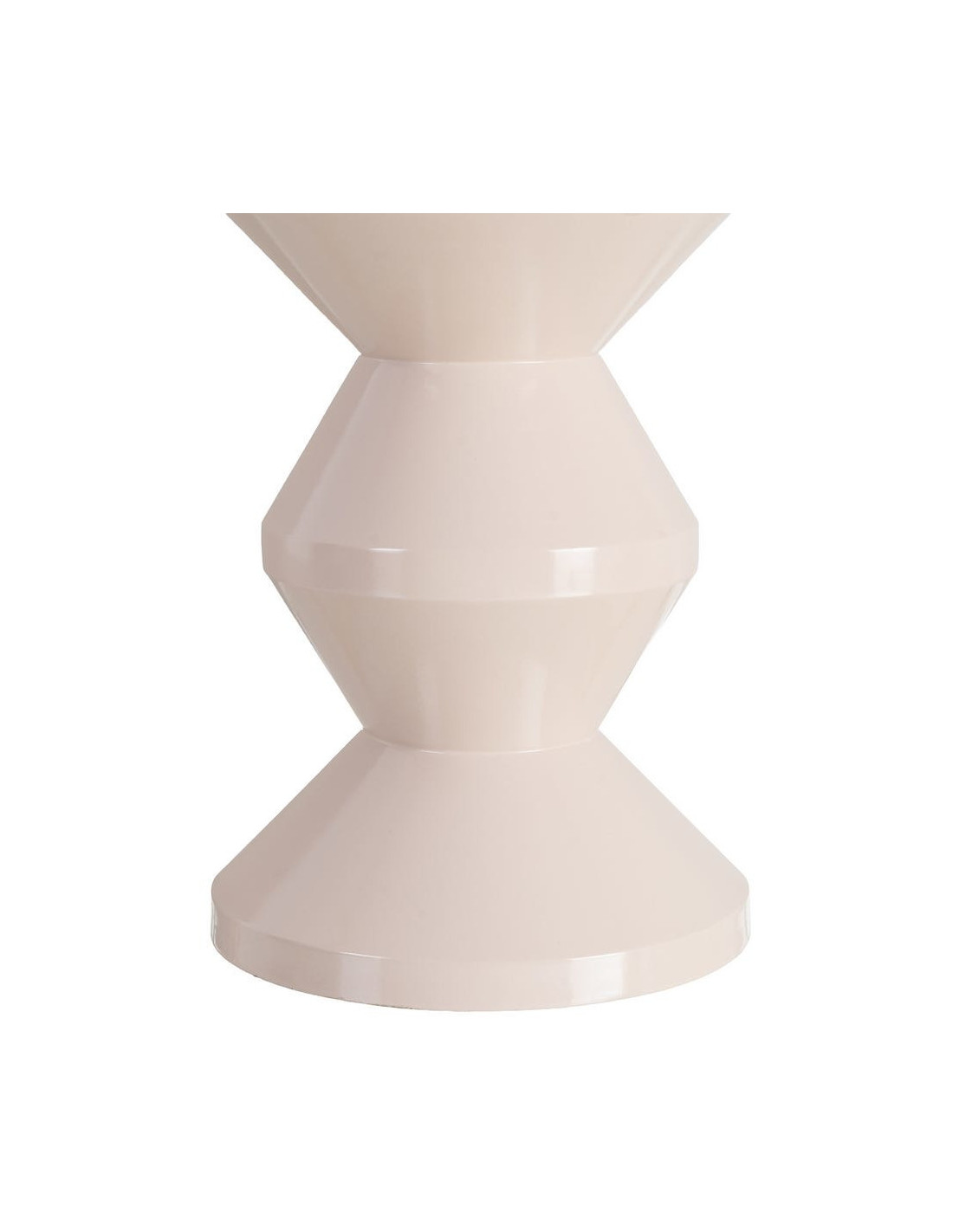 Table d'appoint ronde 33 cm en métal blanc cassé brillant. Design Totem graphique. Style minimaliste affirmé.