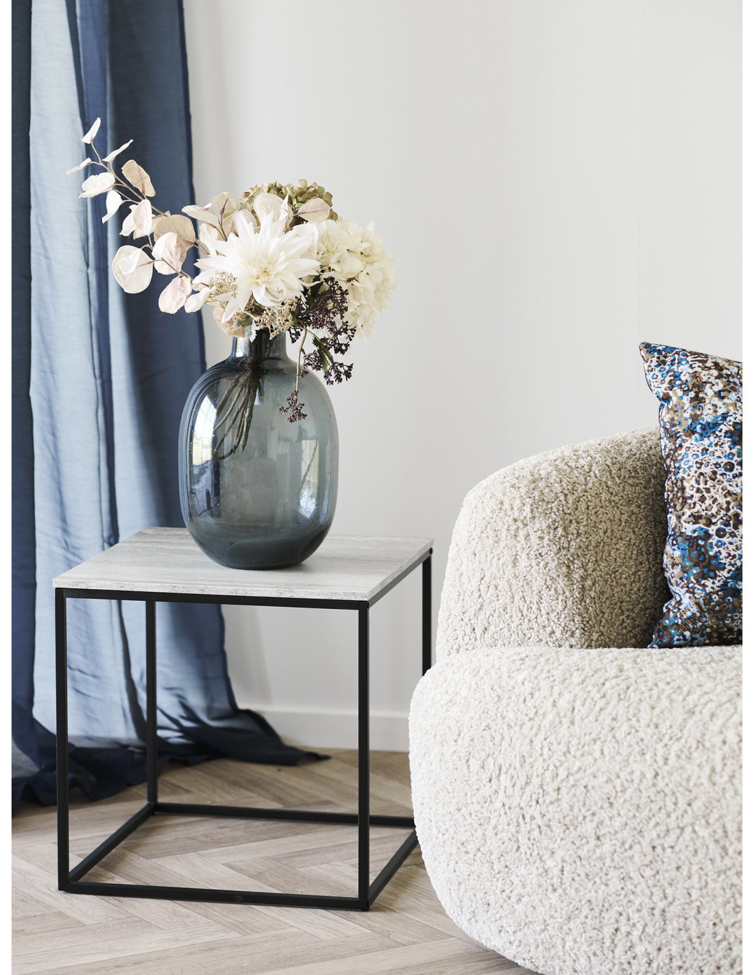 La table d’appoint Vita se distingue par une structure cubique en métal noir qui dessine des lignes nettes et précises. Cette géométrie simple apporte une lecture claire du meuble dans l’espace. Elle crée une présence discrète mais affirmée. Elle s’intègre facilement dans un intérieur contemporain. Elle structure la pièce sans l’alourdir. Elle met en valeur les volumes environnants. Elle accompagne un mobilier plus imposant. Elle apporte une touche graphique maîtrisée. Elle équilibre l’ensemble de la décoration. Elle devient un élément fonctionnel et esthétique.