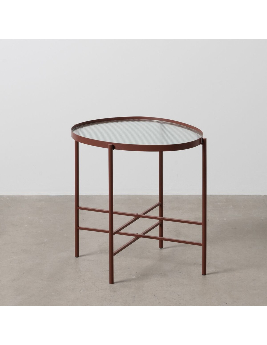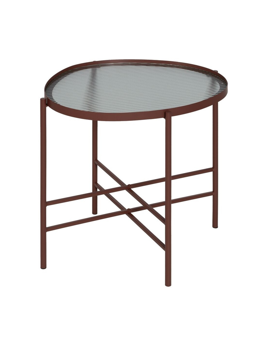 Table d'appoint industrielle Ovale en Métal Rouge bordeaux Verre Semi transparent Relyn - 5
