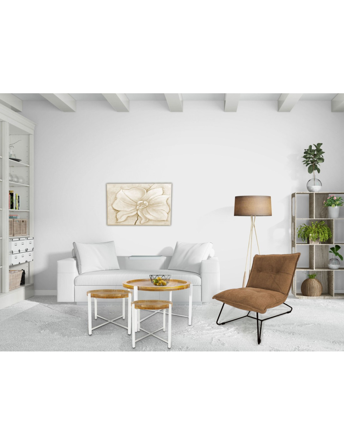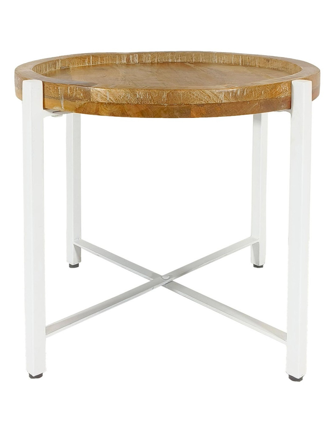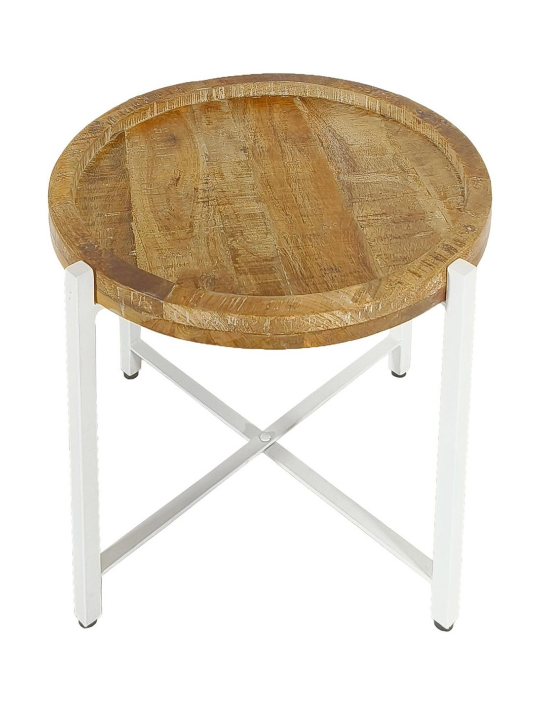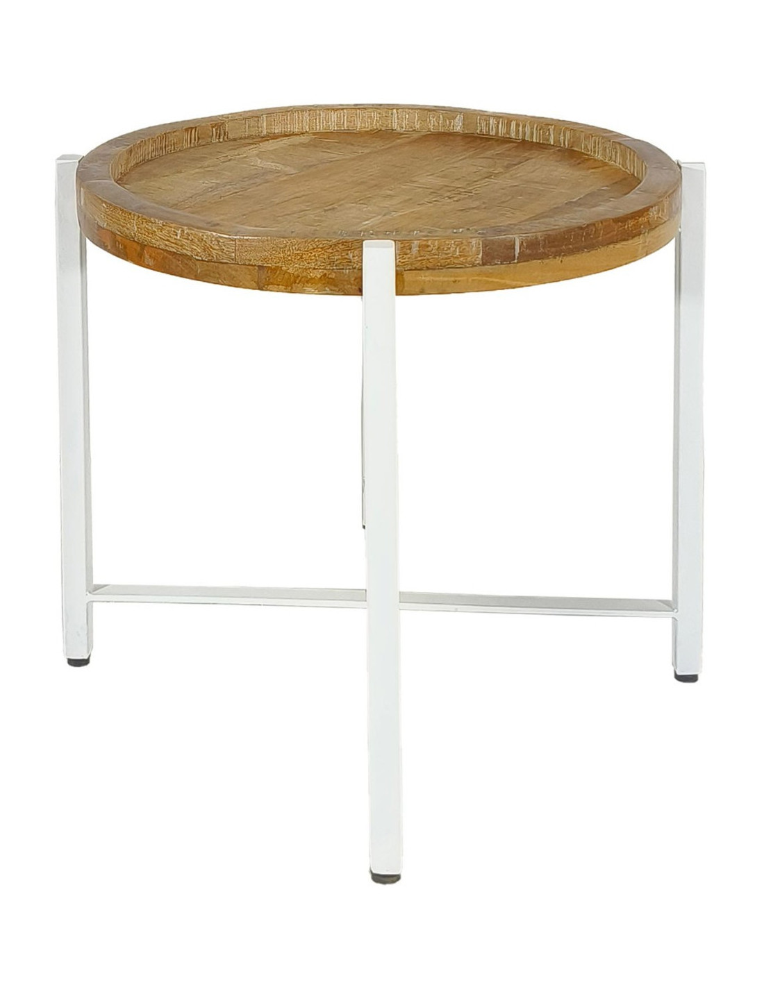 Table d'appoint industrielle Ronde en Bois de manguier recyclé Marron Métal Blanc Rynlox