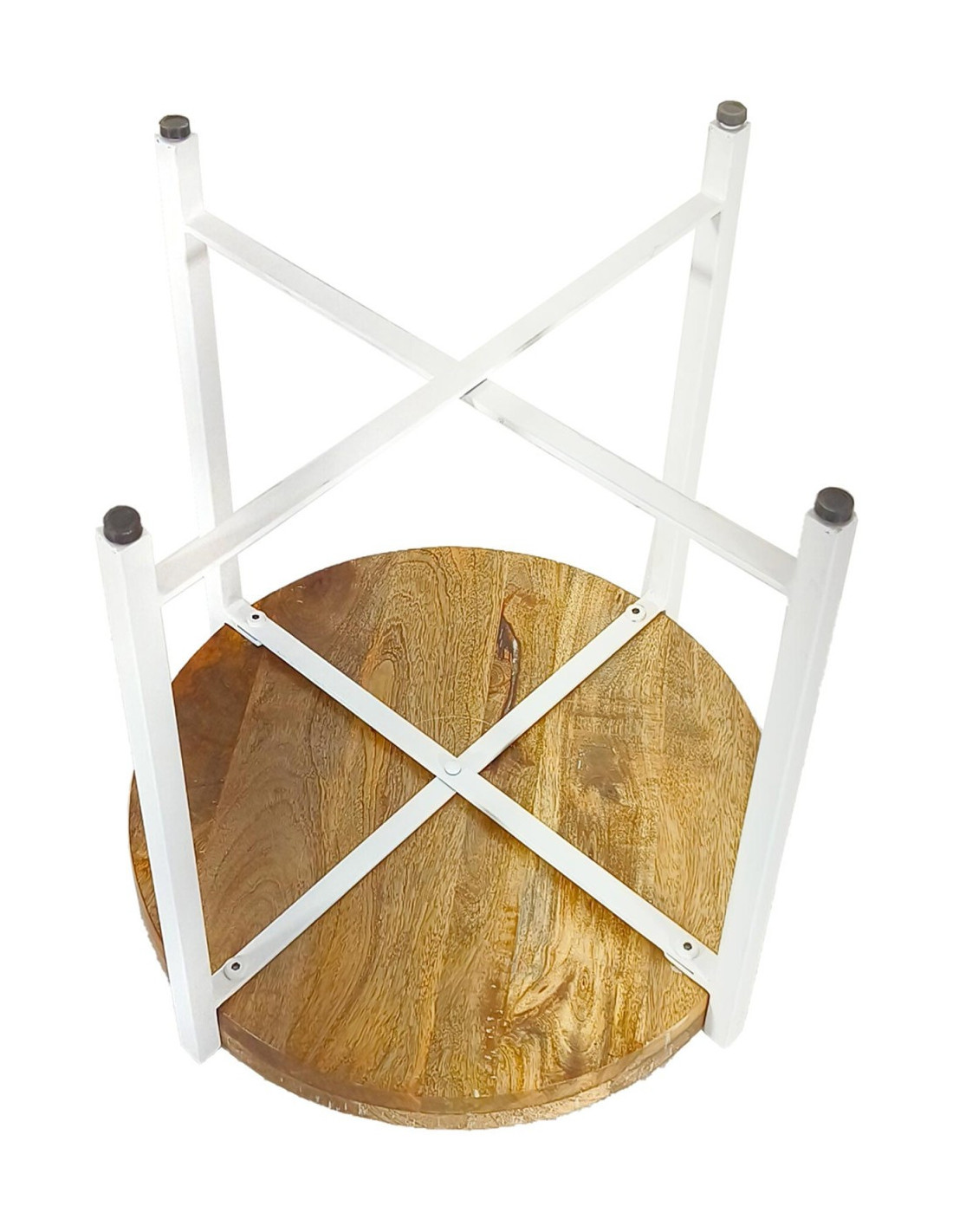 Table d'appoint industrielle Ronde en Bois de manguier recyclé Marron Métal Blanc Rynlox - 5