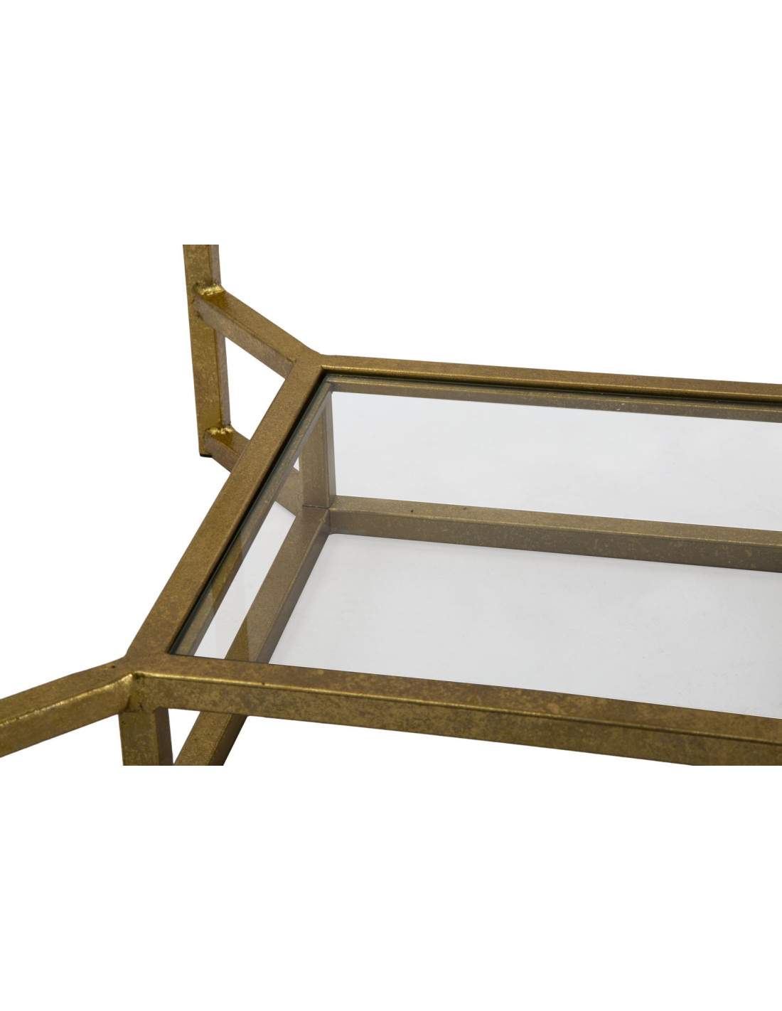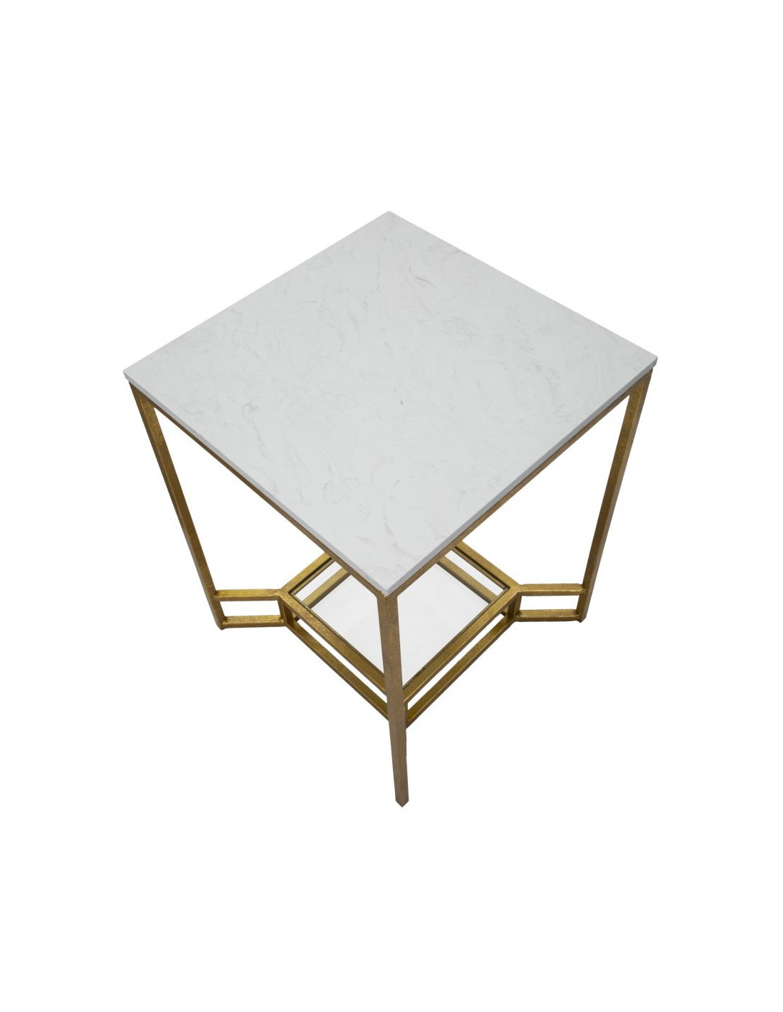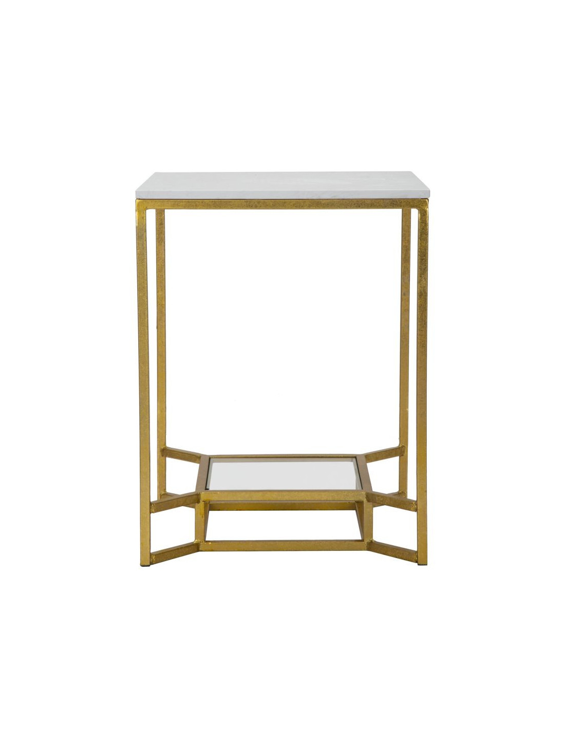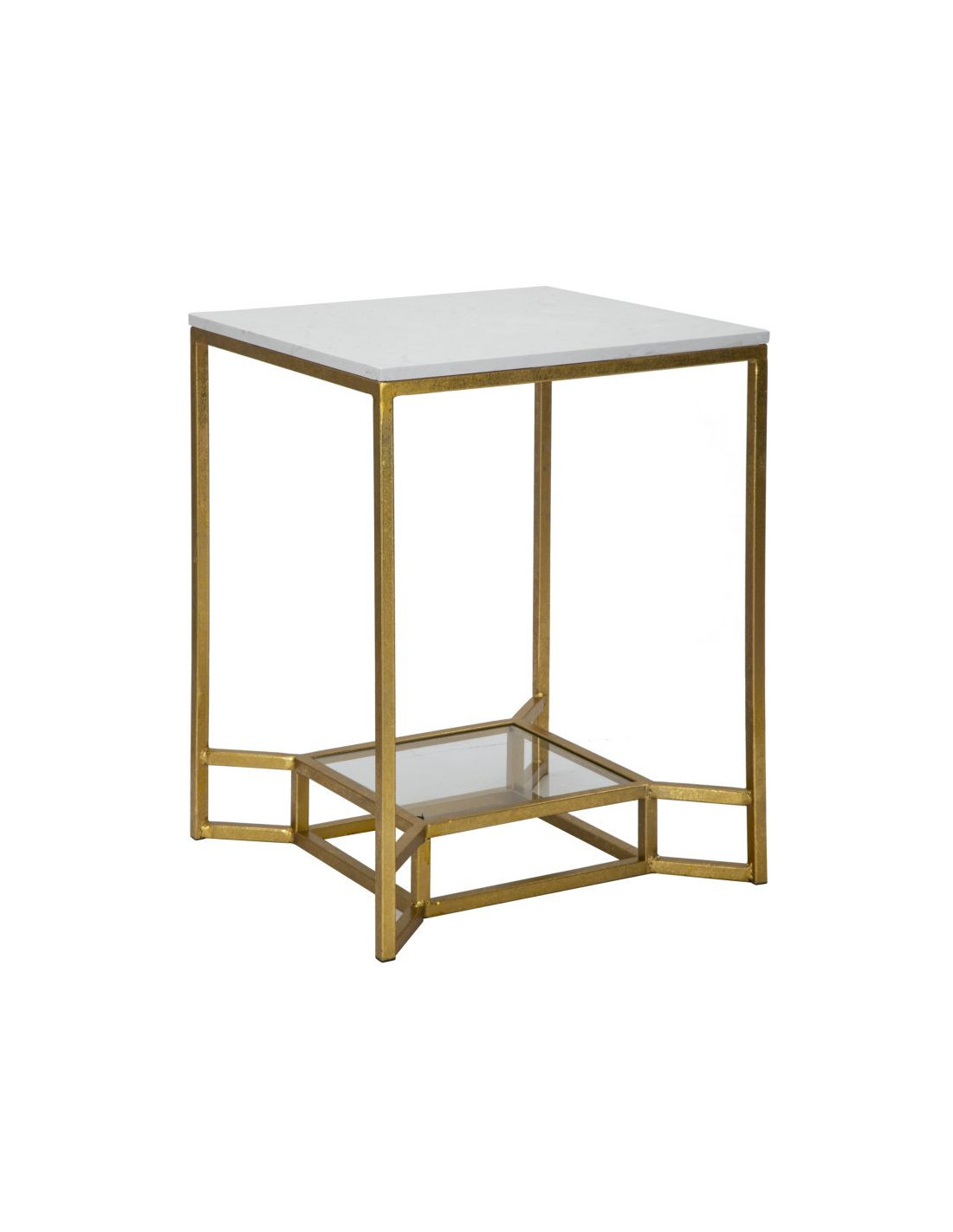 Table d'appoint moderne Carrée 1 étagère en Marbre Blanc Métal Doré Verre Double