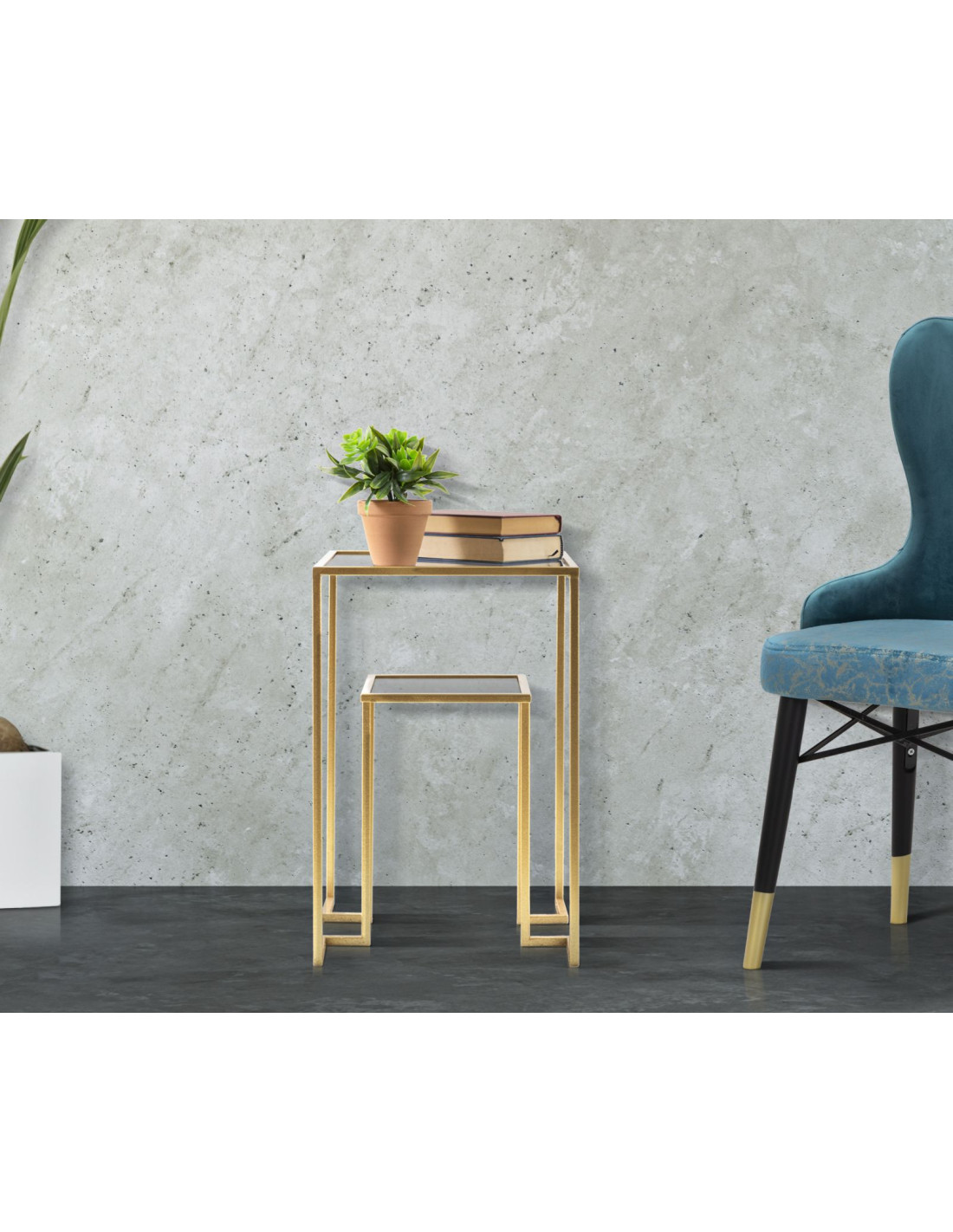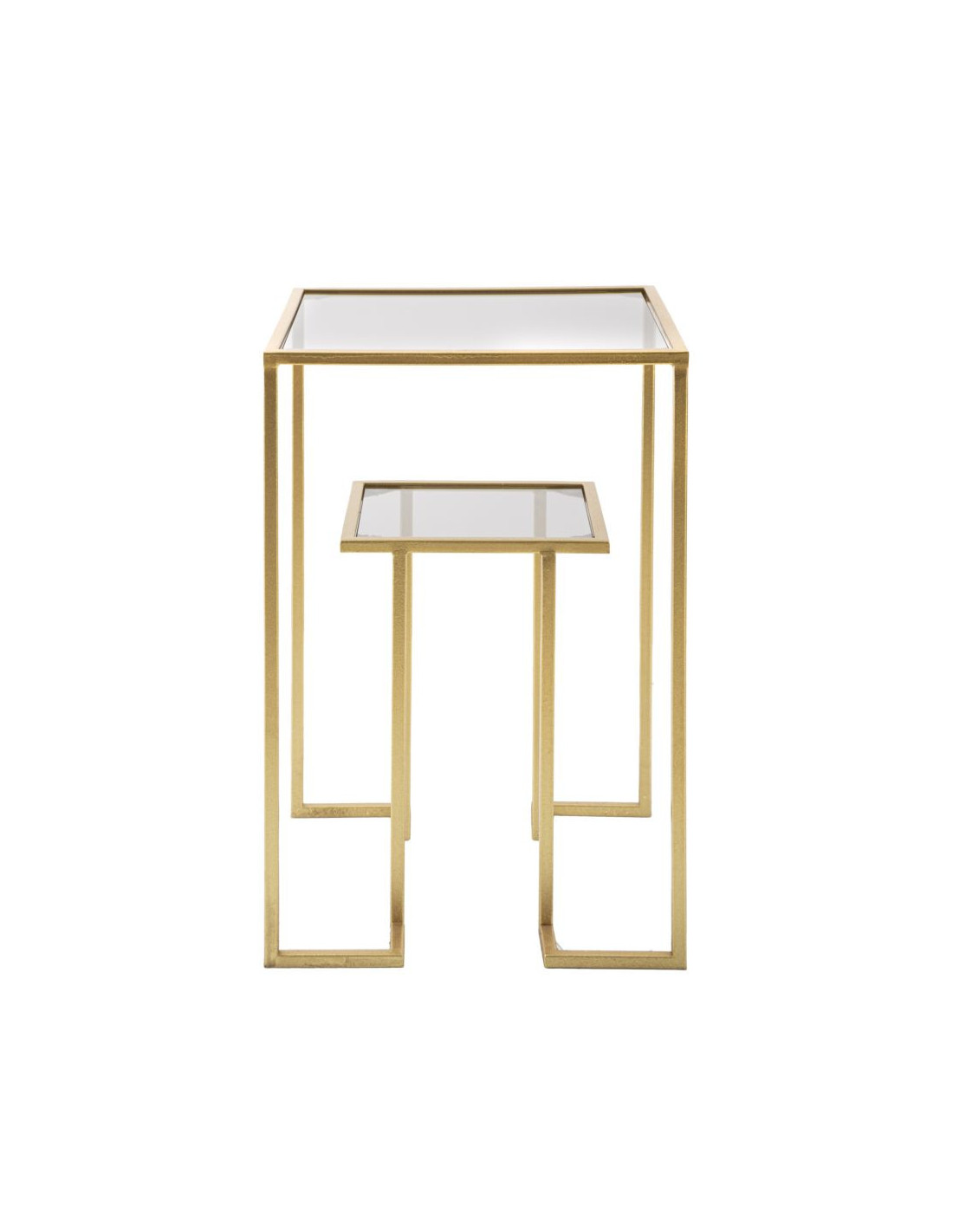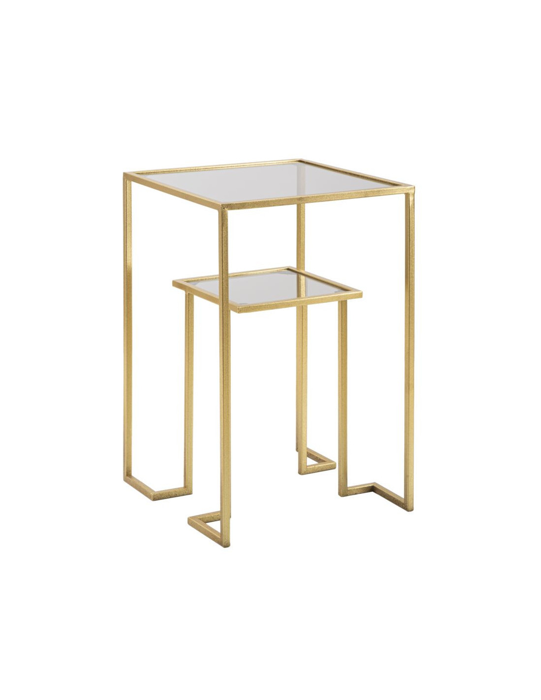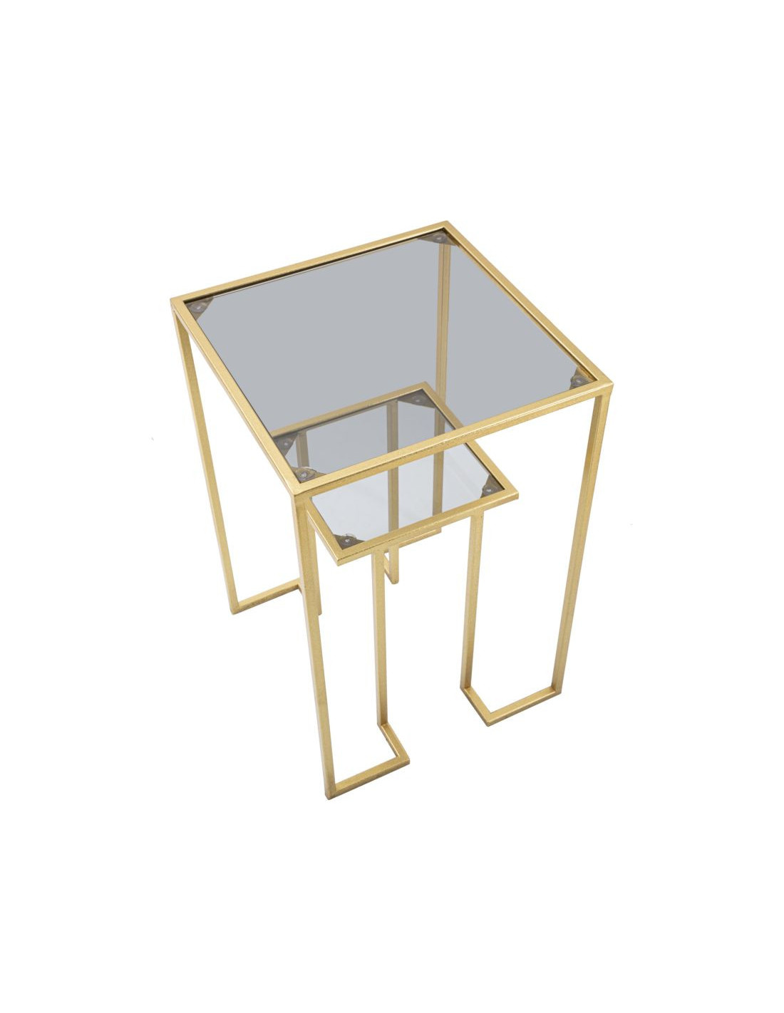 Table d'appoint moderne Carrée 1 étagère en Métal Doré Verre Level