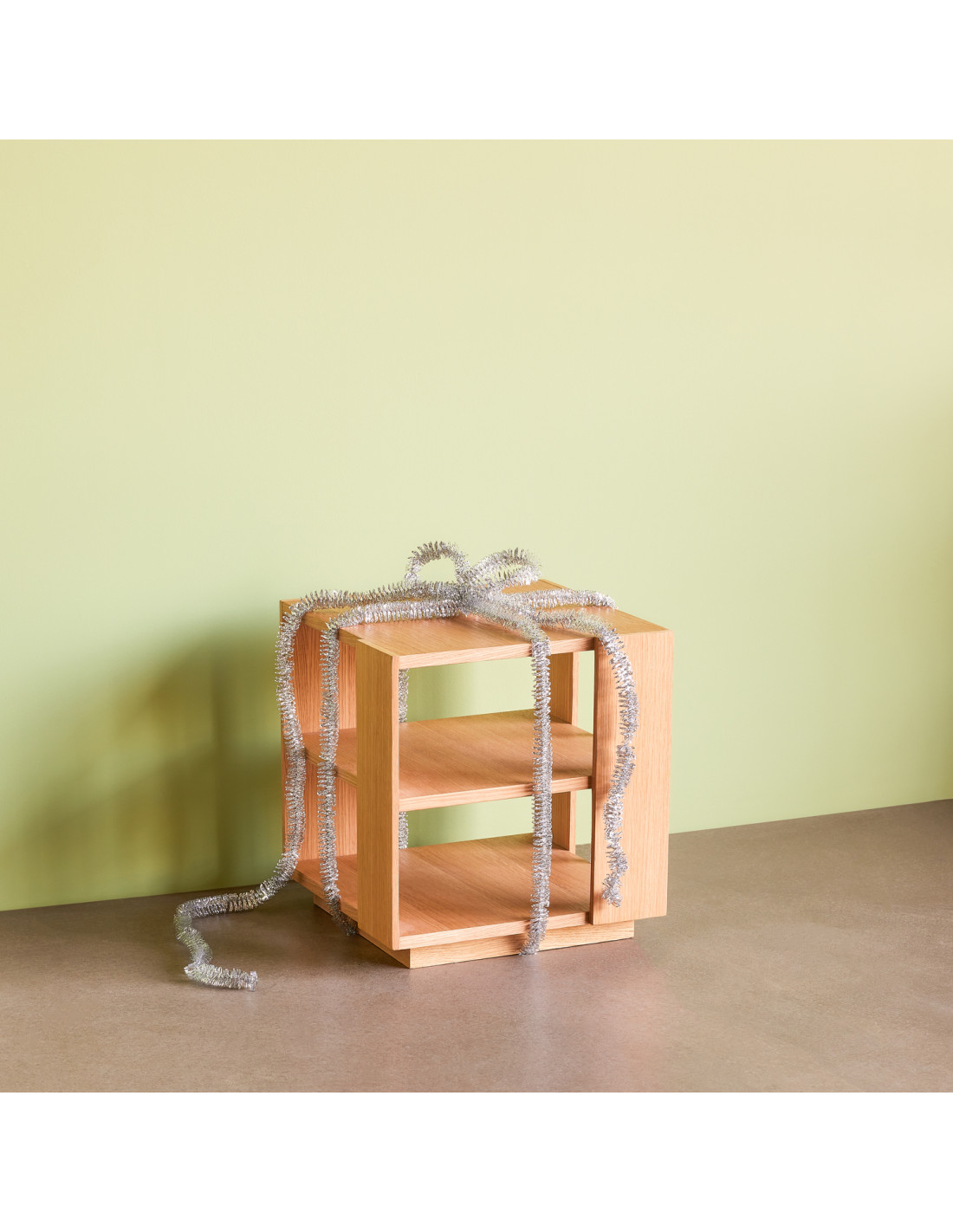 Table d'appoint moderne Carrée 2 étagères en Bois MDF Naturel Effet chêne Merge