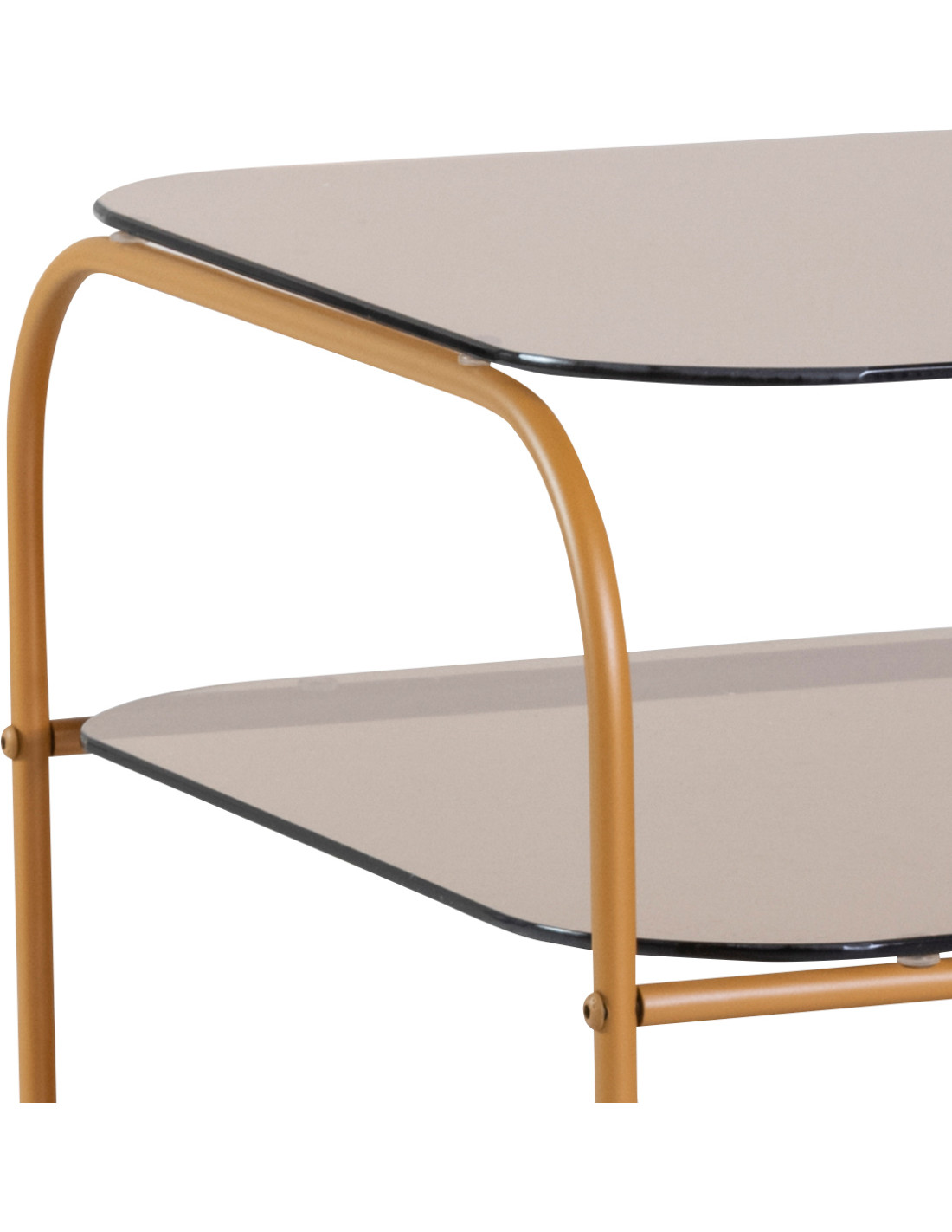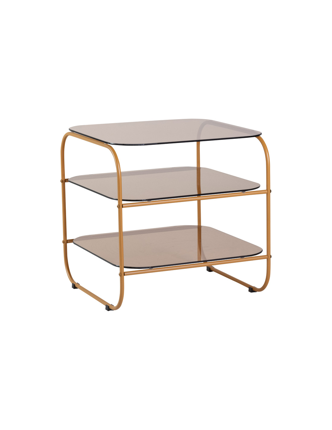 Table d'appoint moderne Carrée 2 étagères en Verre Marron Ambré Métal Orange Echo - 1