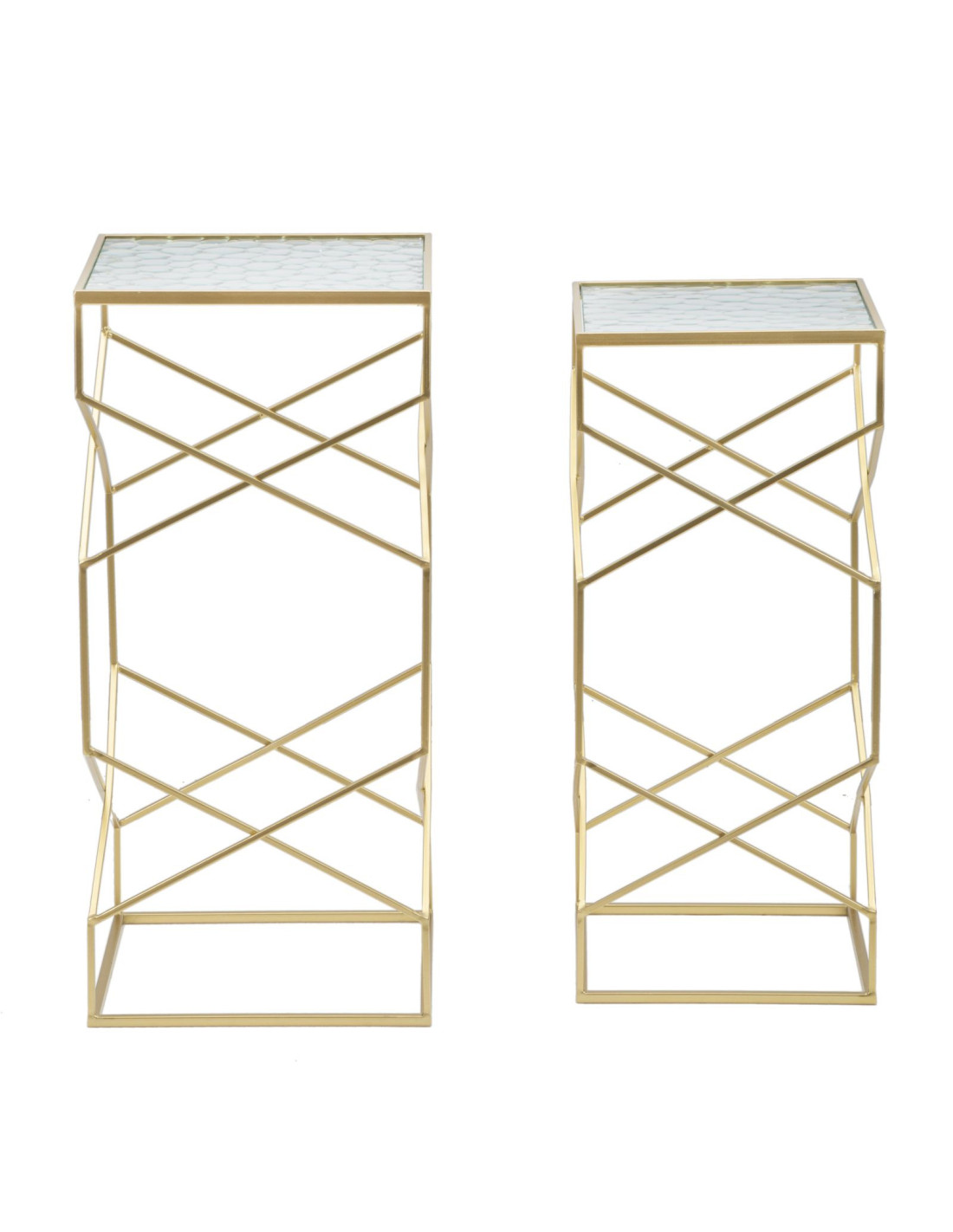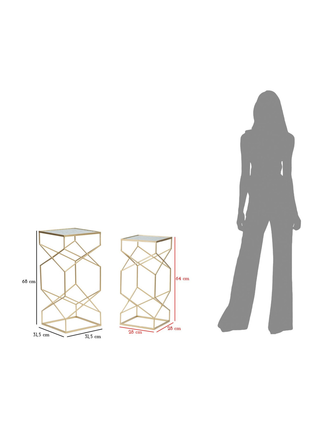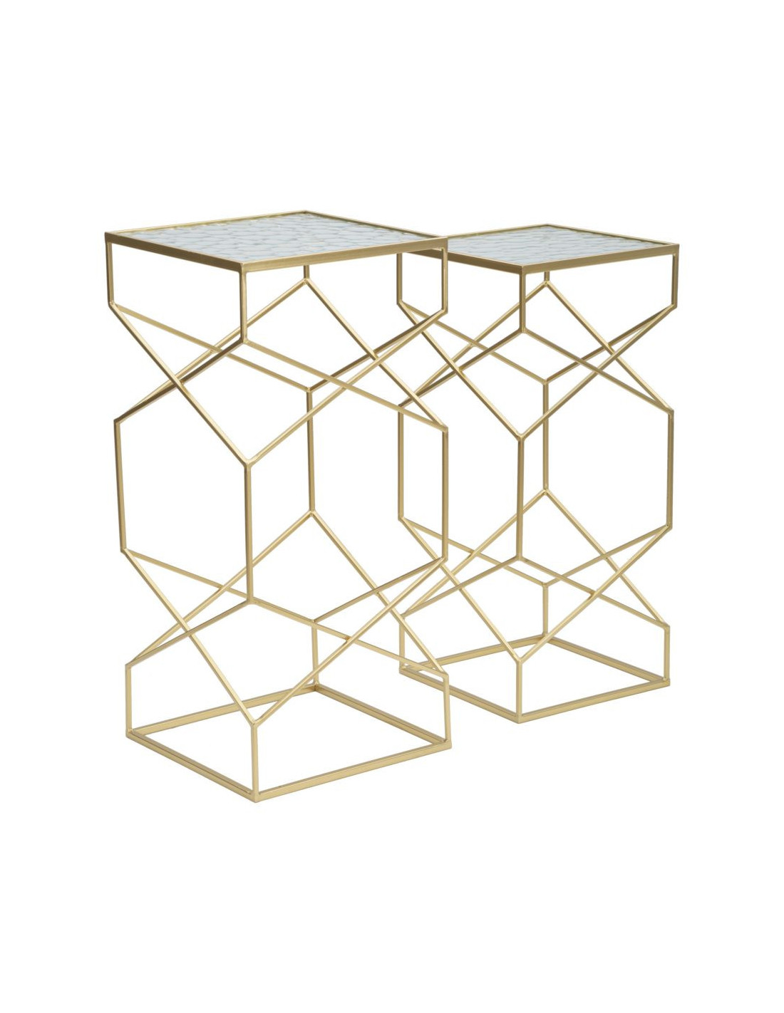 Table d'appoint moderne Carrée en Métal Doré Miroir Glassy (Lot de 2)