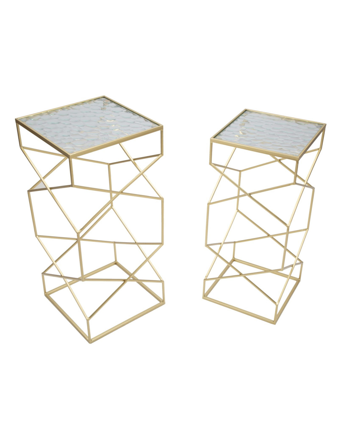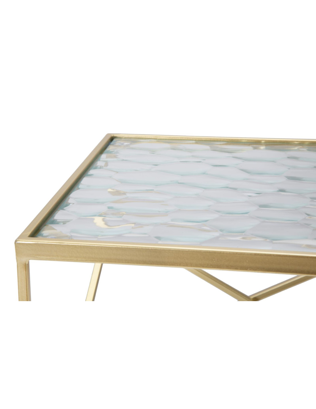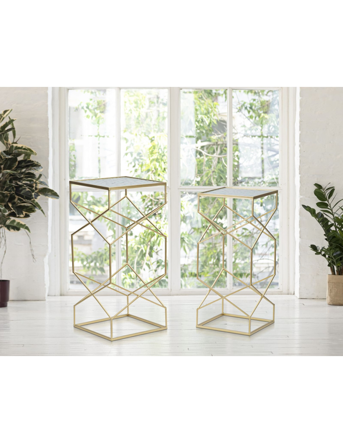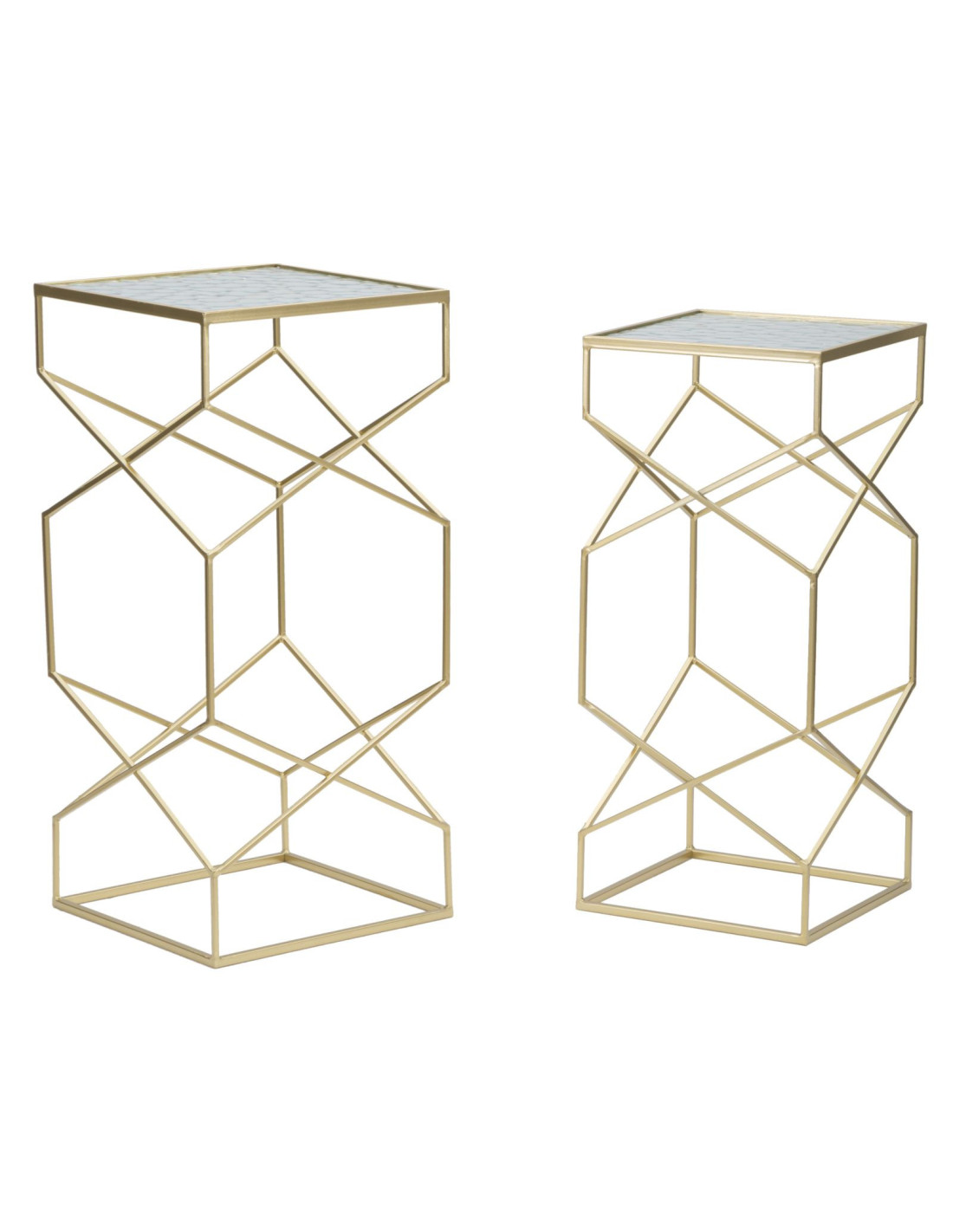 Table d'appoint moderne Carrée en Métal Doré Miroir Glassy (Lot de 2)