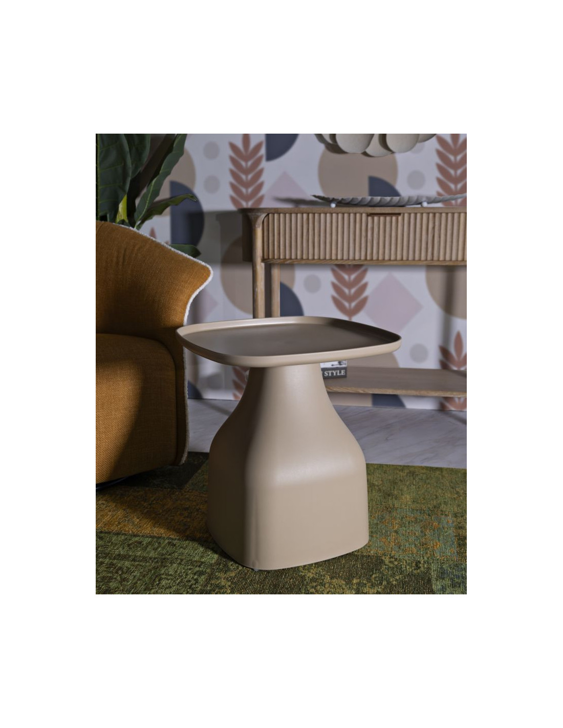 Table d'appoint moderne Carrée Hauteur 50 cm Polypropylène Beige Gia