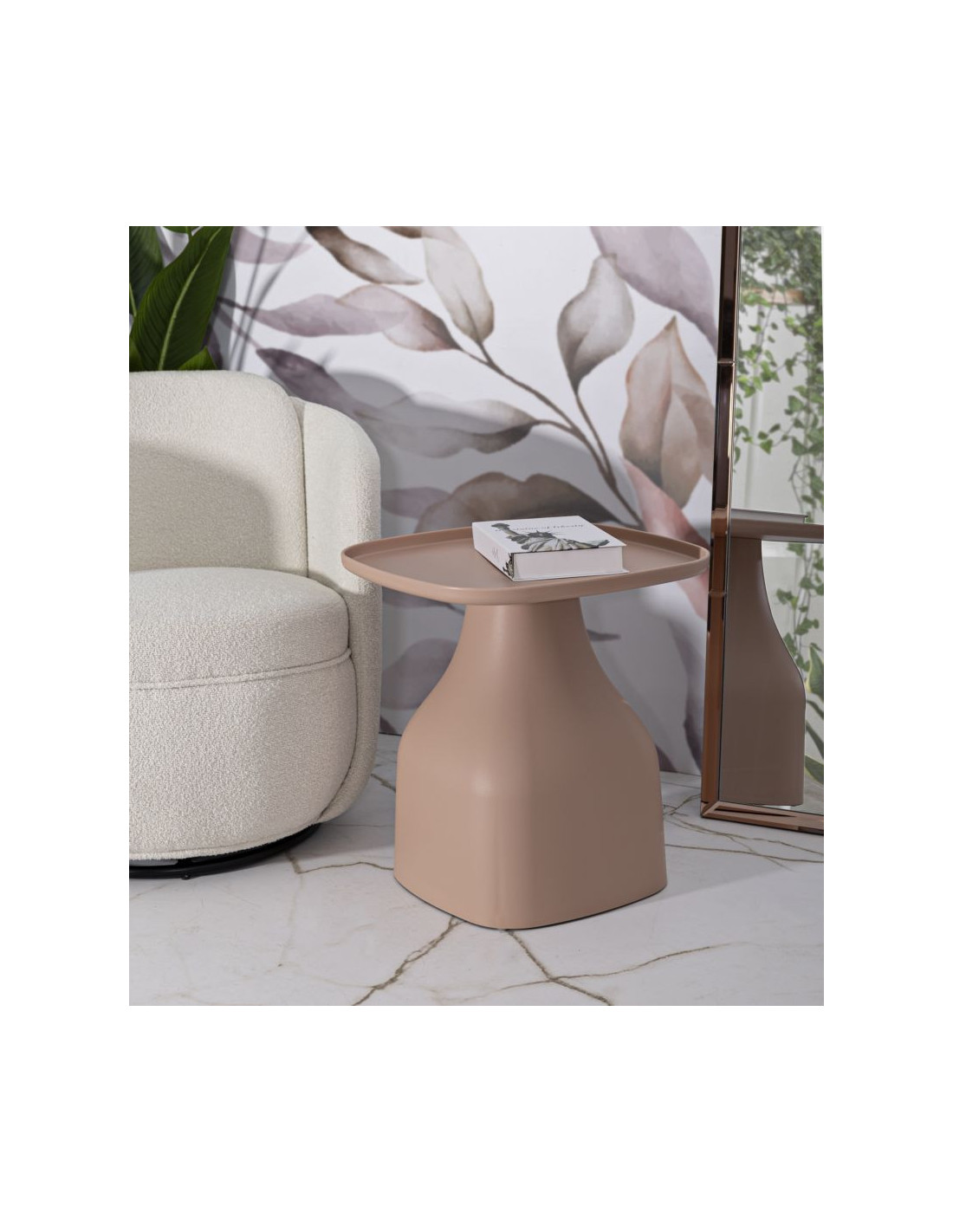 Table d'appoint moderne Carrée Hauteur 50 cm Polypropylène Rose Gia