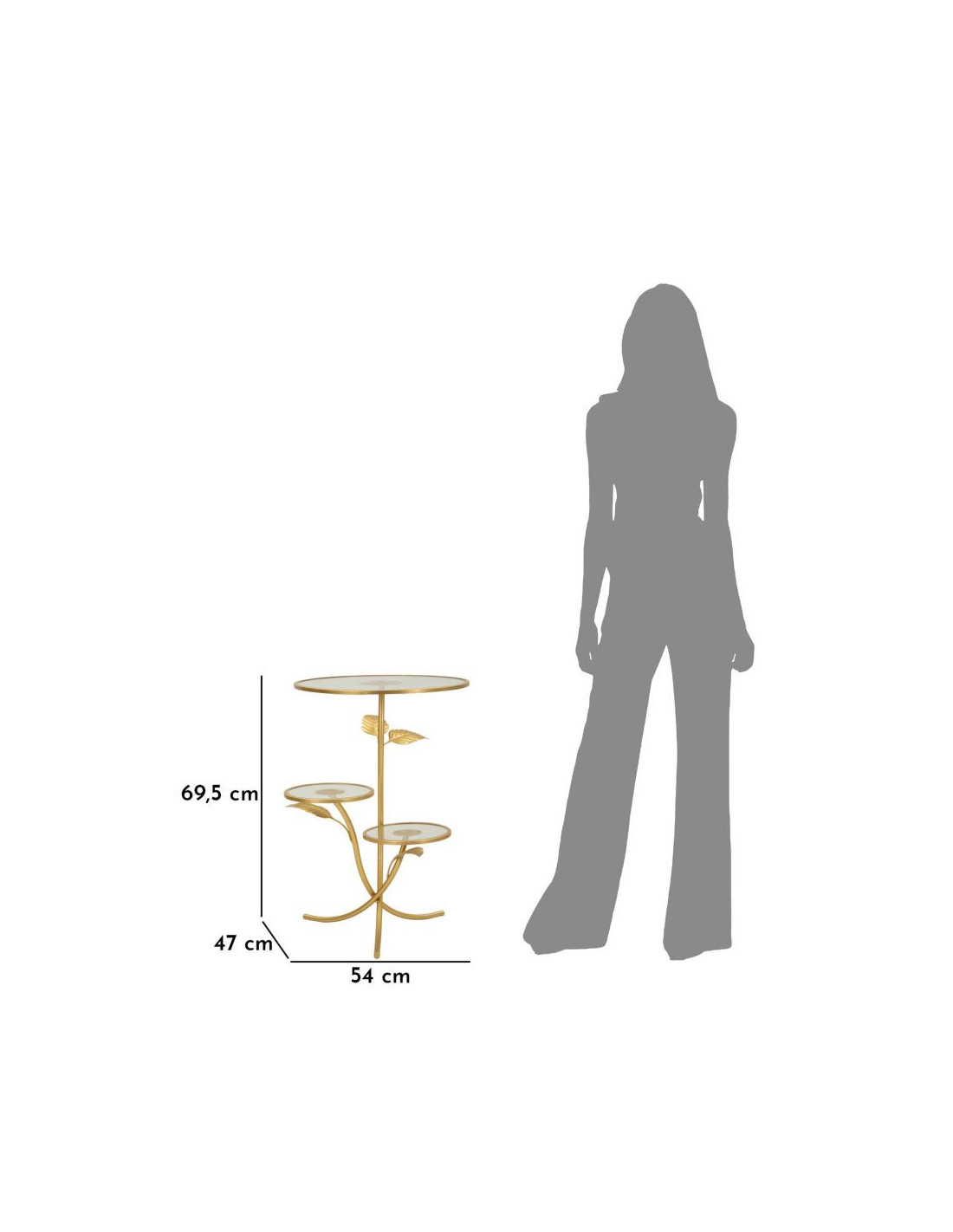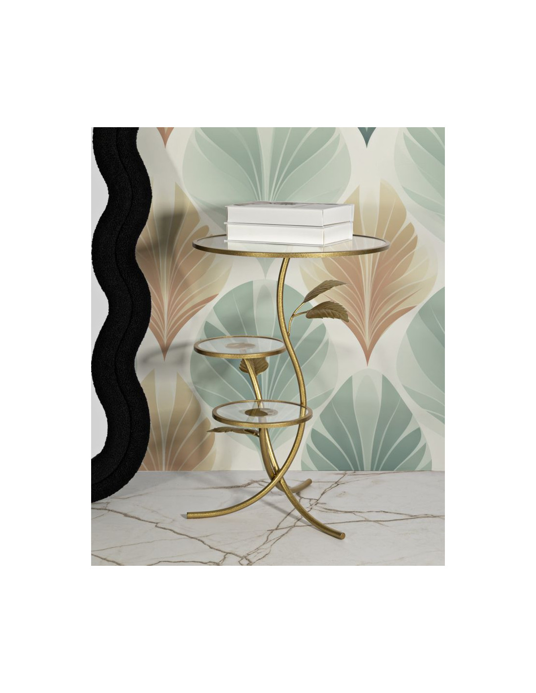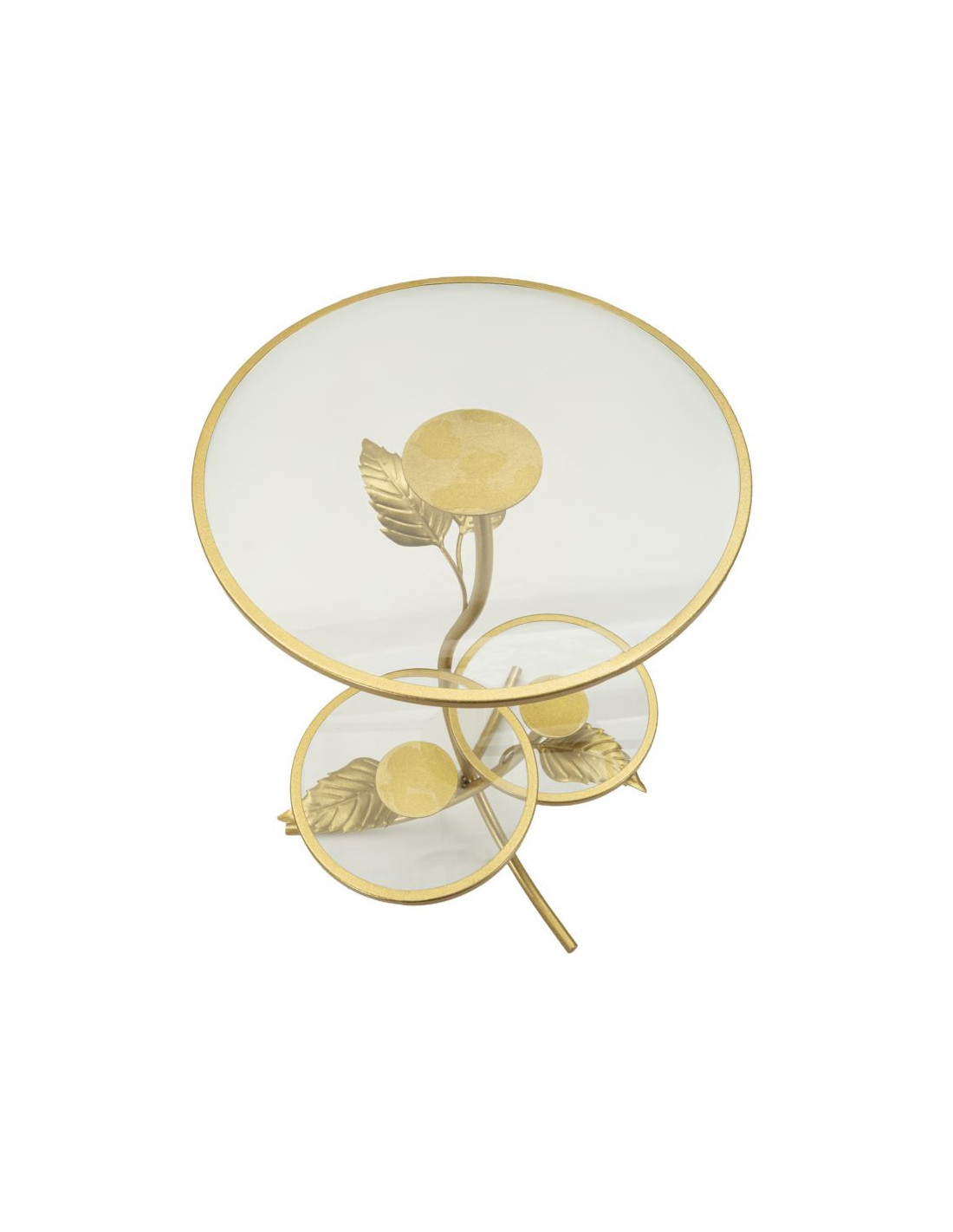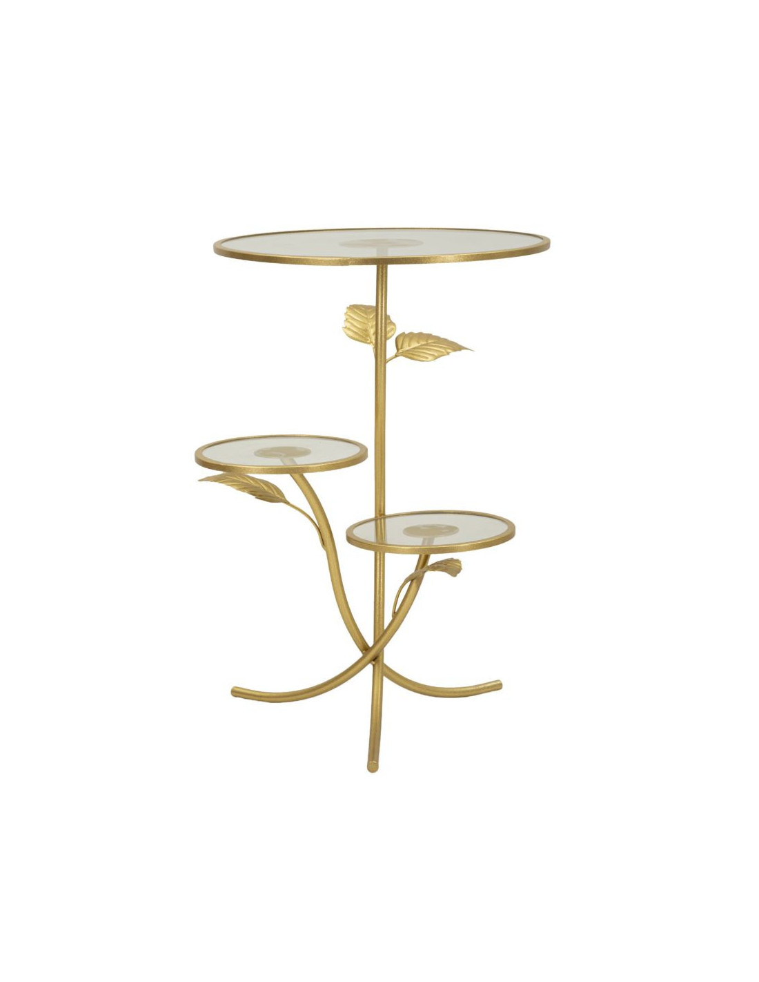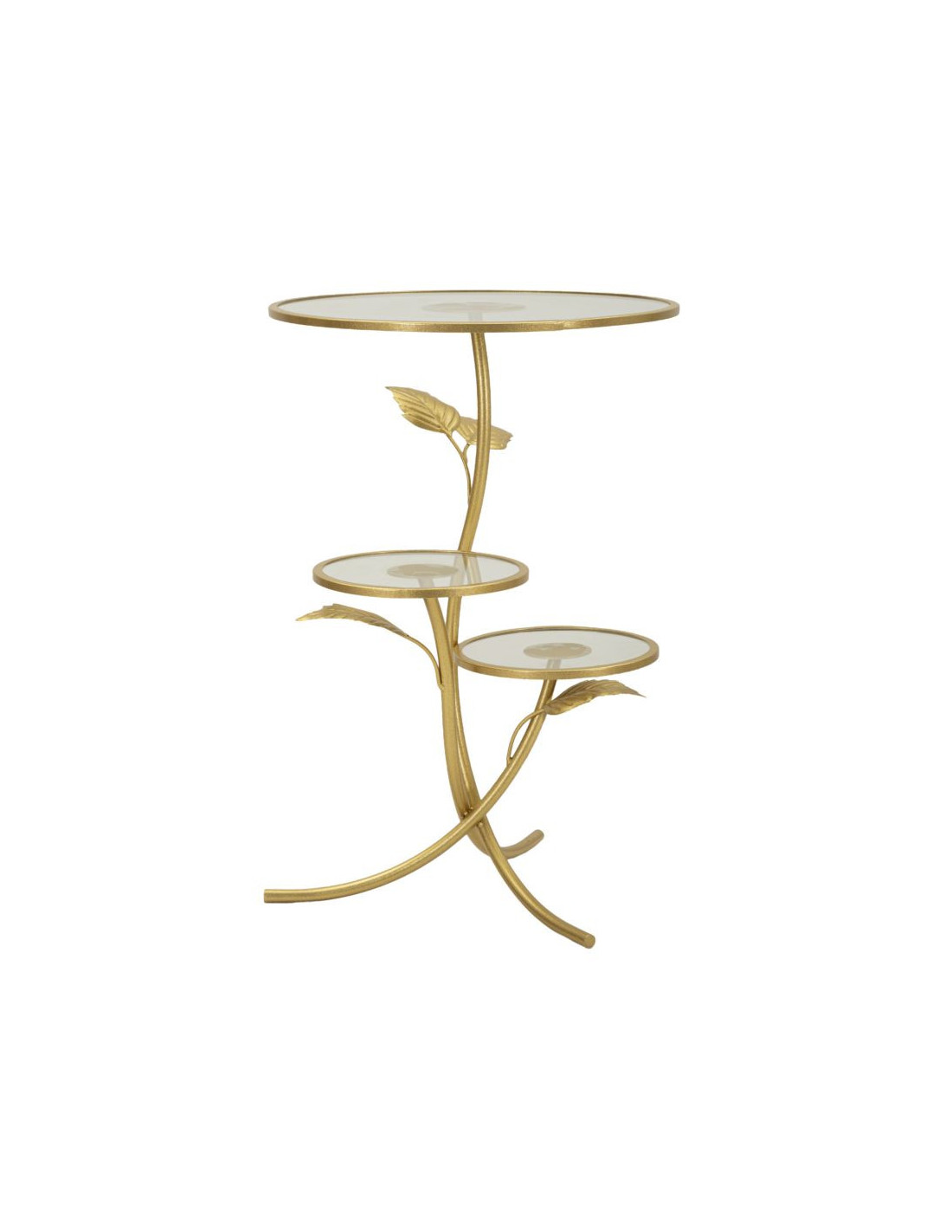 Table d'appoint moderne chic Ronde 3 niveaux Métal Doré Motif feuilles Verre Leaf
