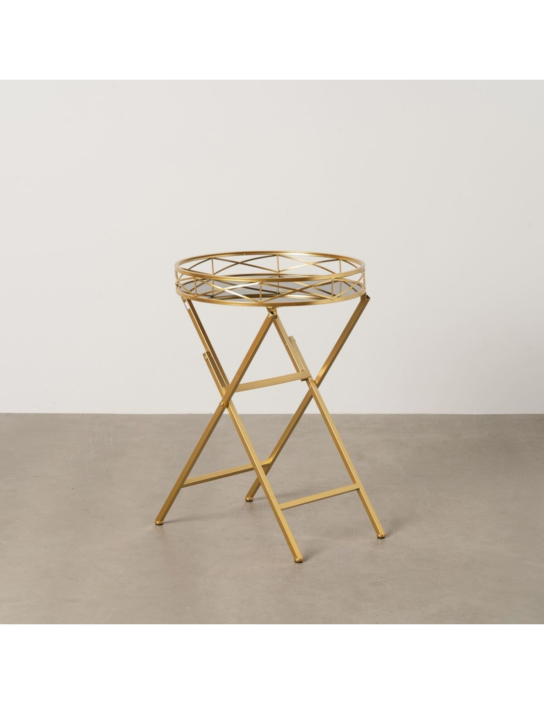 Table d'appoint moderne chic Ronde en Métal Doré Verre Noir Calpe - 1