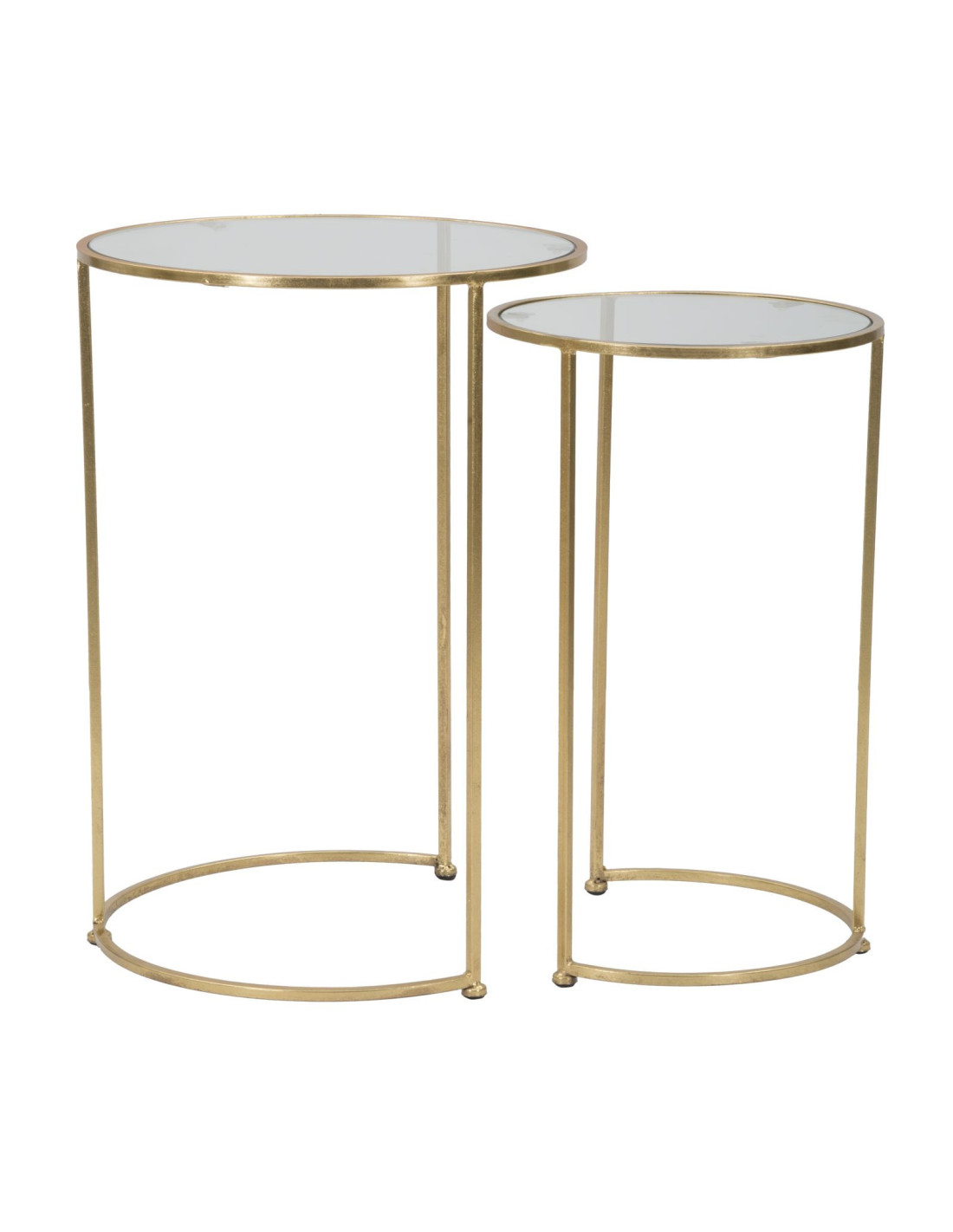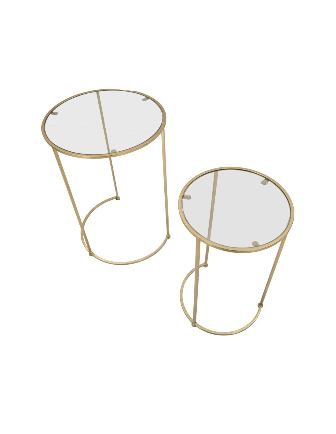 Table d'appoint moderne gigogne Ronde en Métal Doré Verre Simply (Lot de 2)