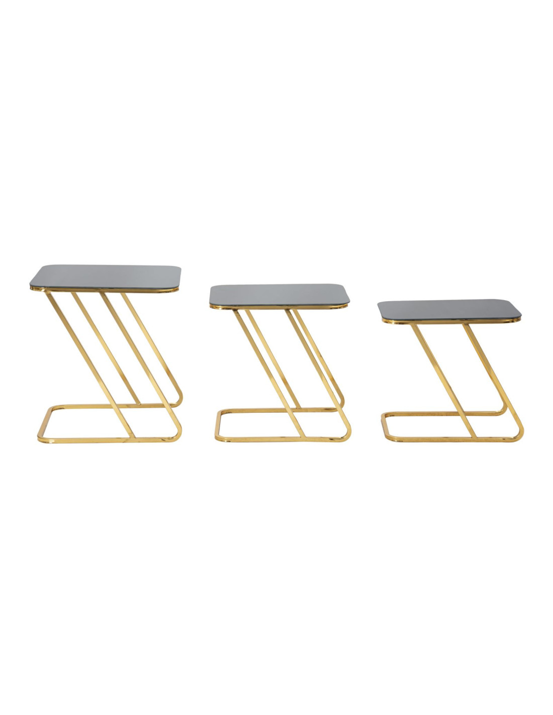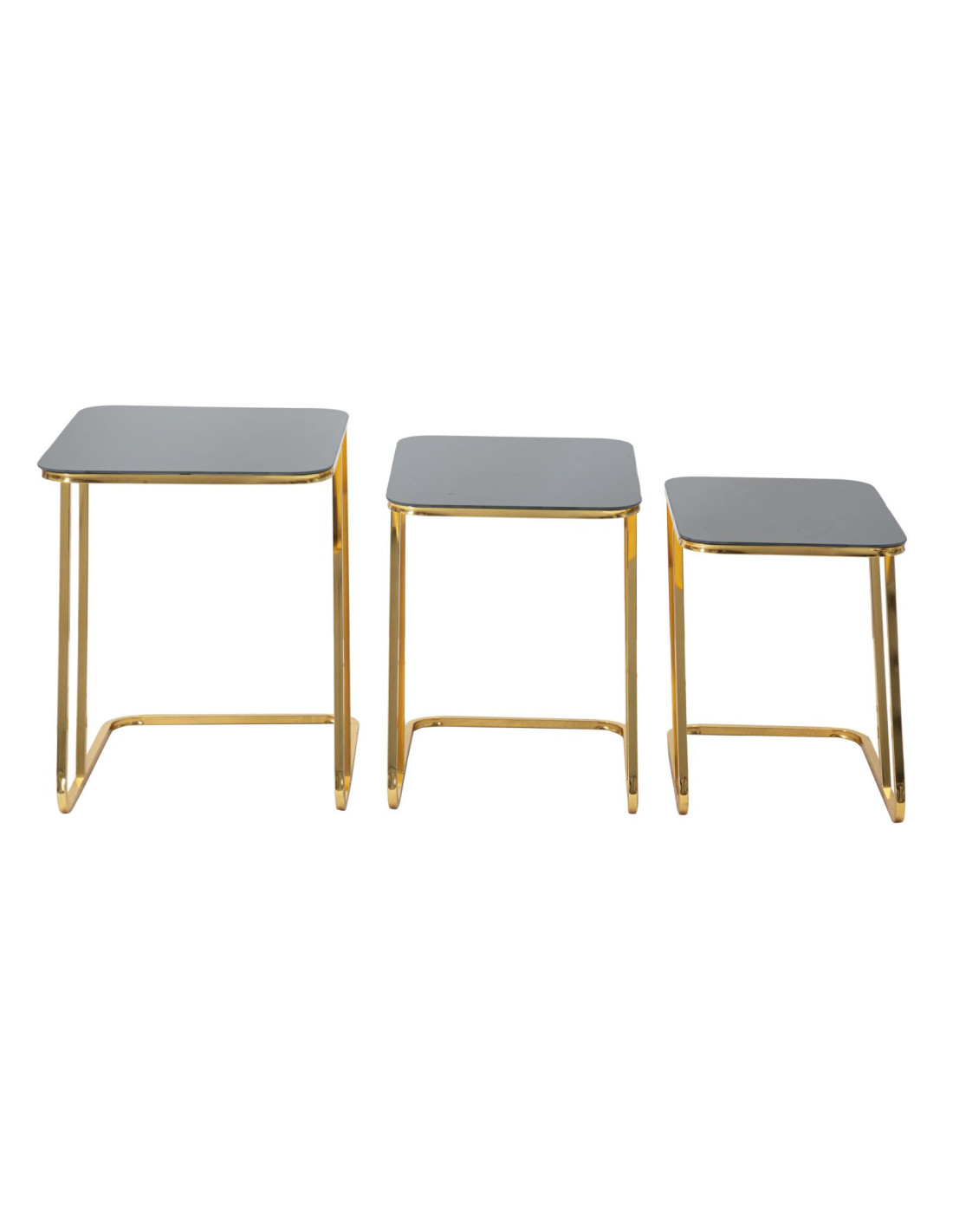 Table d'appoint moderne Rectangulaire en Métal Doré Verre Simple (Lot de 3)