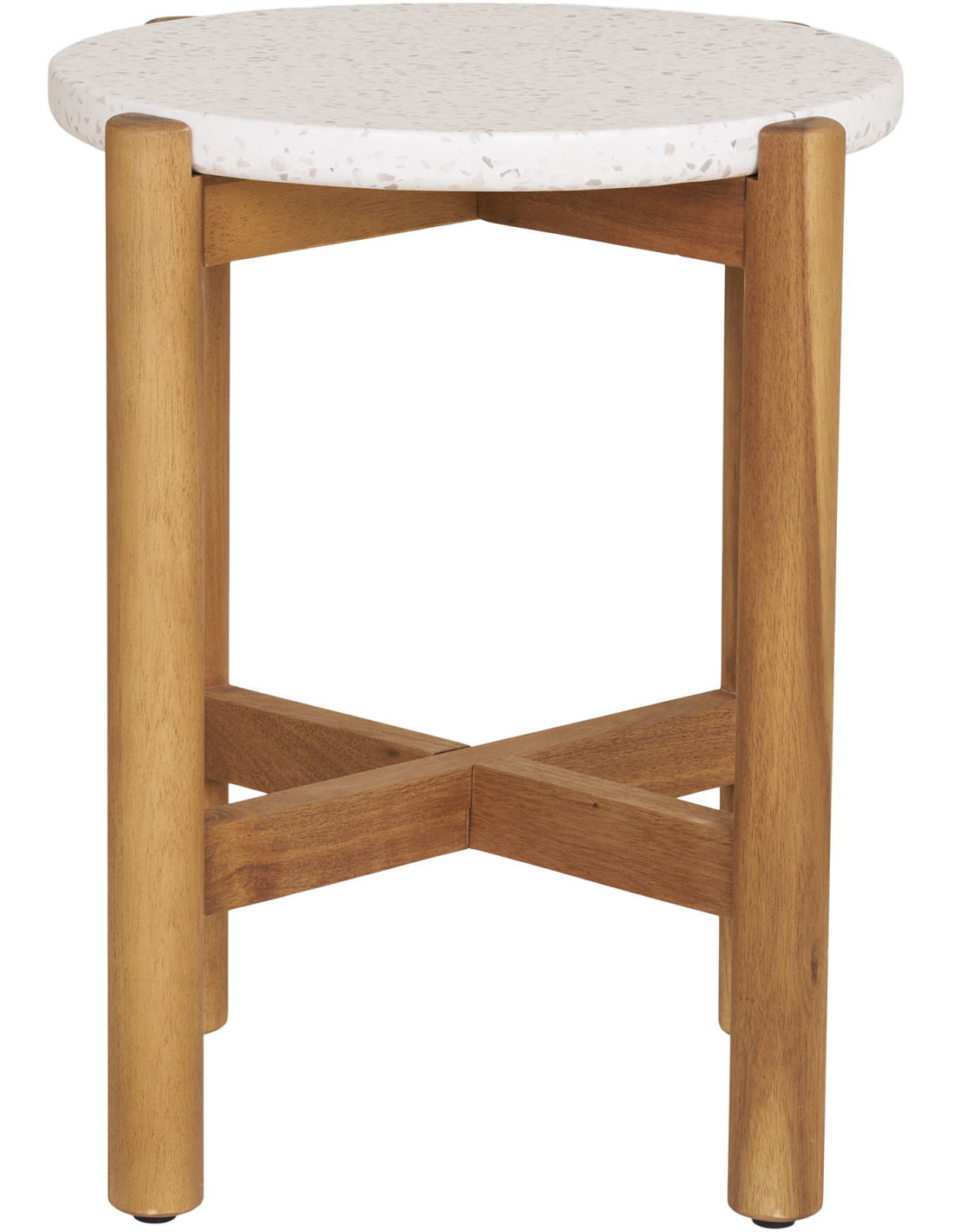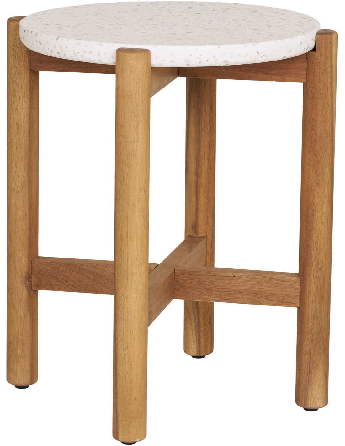 Table d'appoint moderne Ronde Bois d'acacia Naturel Terrazzo Blanc Terracina - 1