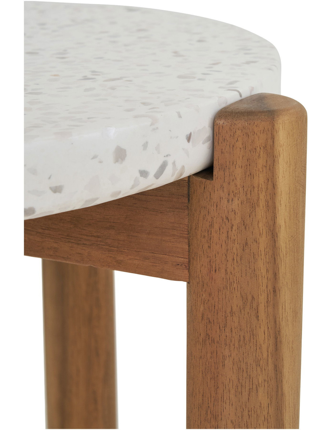 Table d'appoint moderne Ronde Bois d'acacia Naturel Terrazzo Blanc Terracina - 8