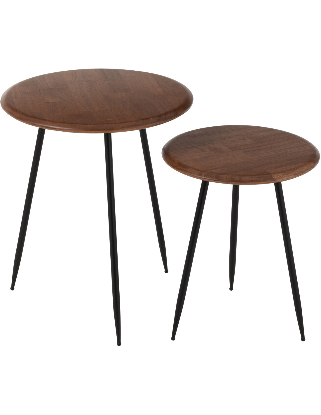 Table d'appoint moderne Ronde en Bois d'hévéa Naturel Métal Noir Neo (Lot de 2)