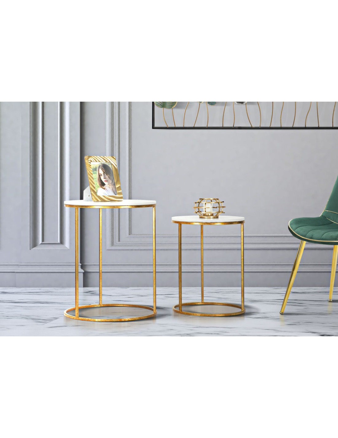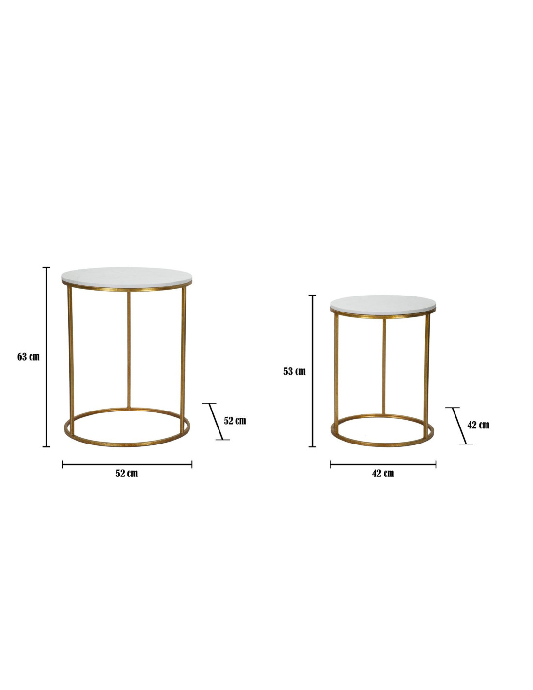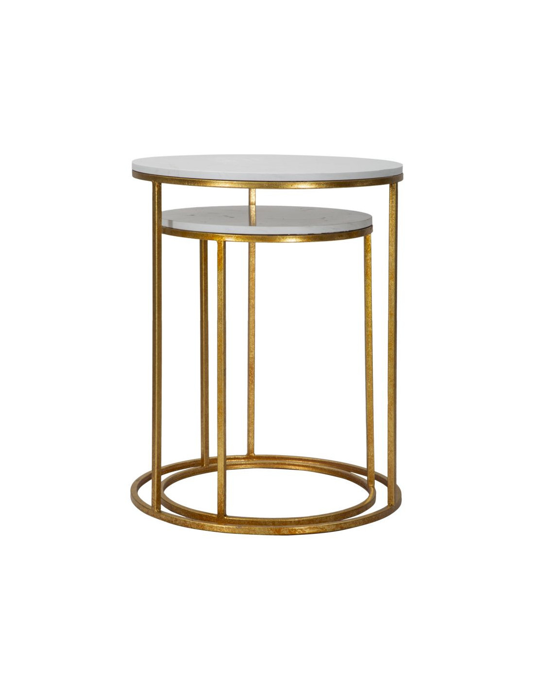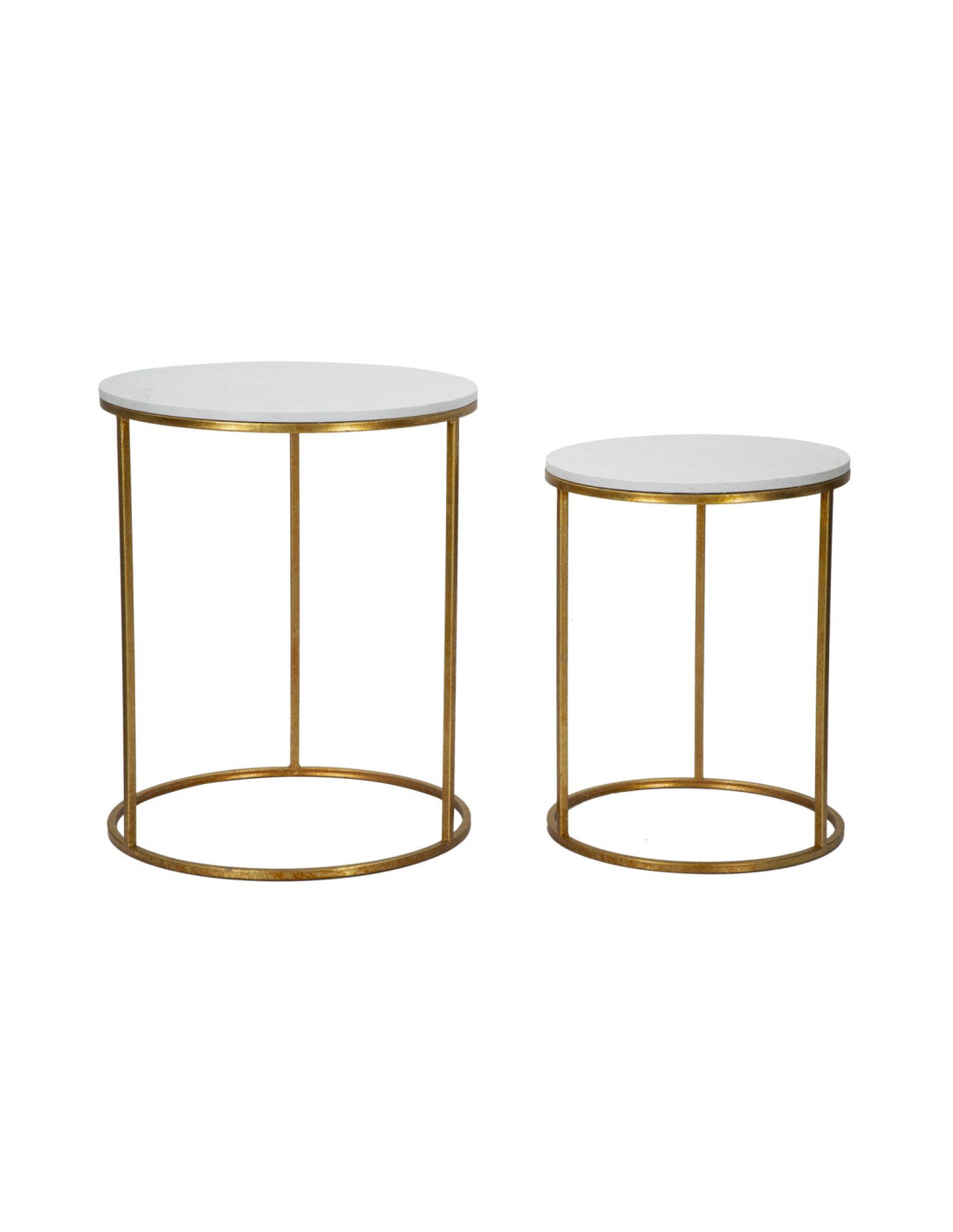 Table d'appoint moderne Ronde en Marbre Blanc Métal Doré Simply (Lot de 2)