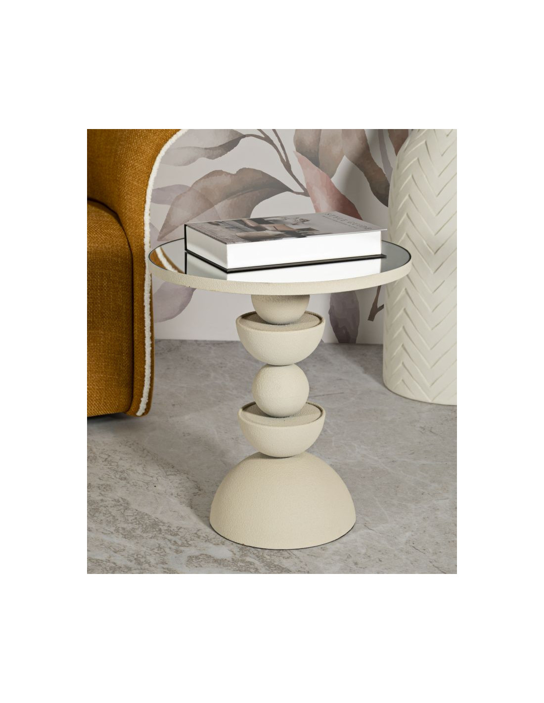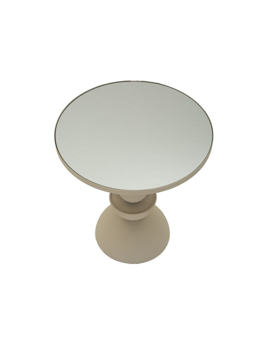 Table d'appoint moderne totem Ronde 40 cm Métal Blanc crème Miroir Dune