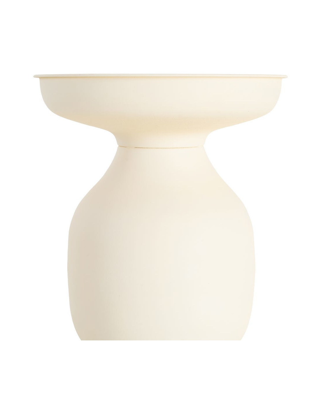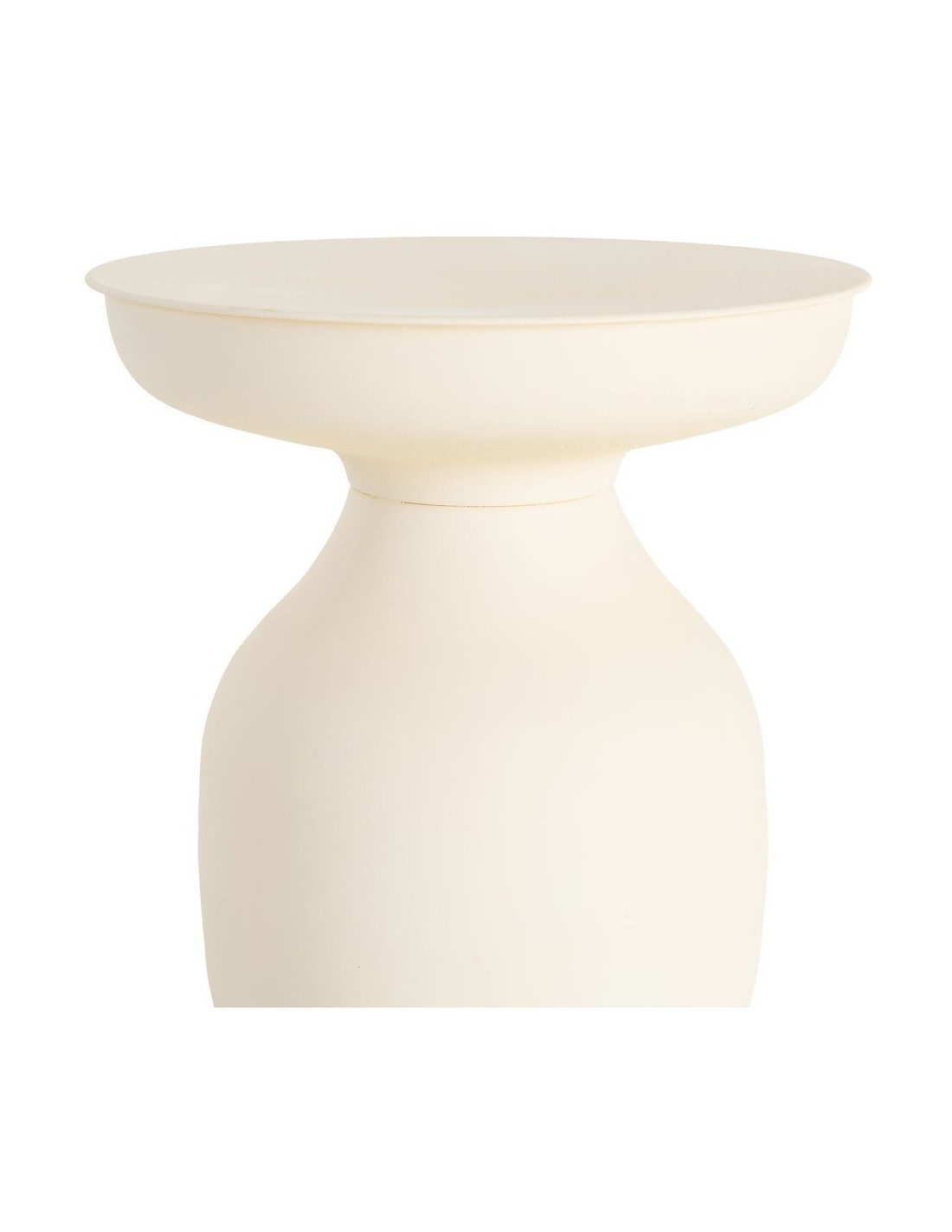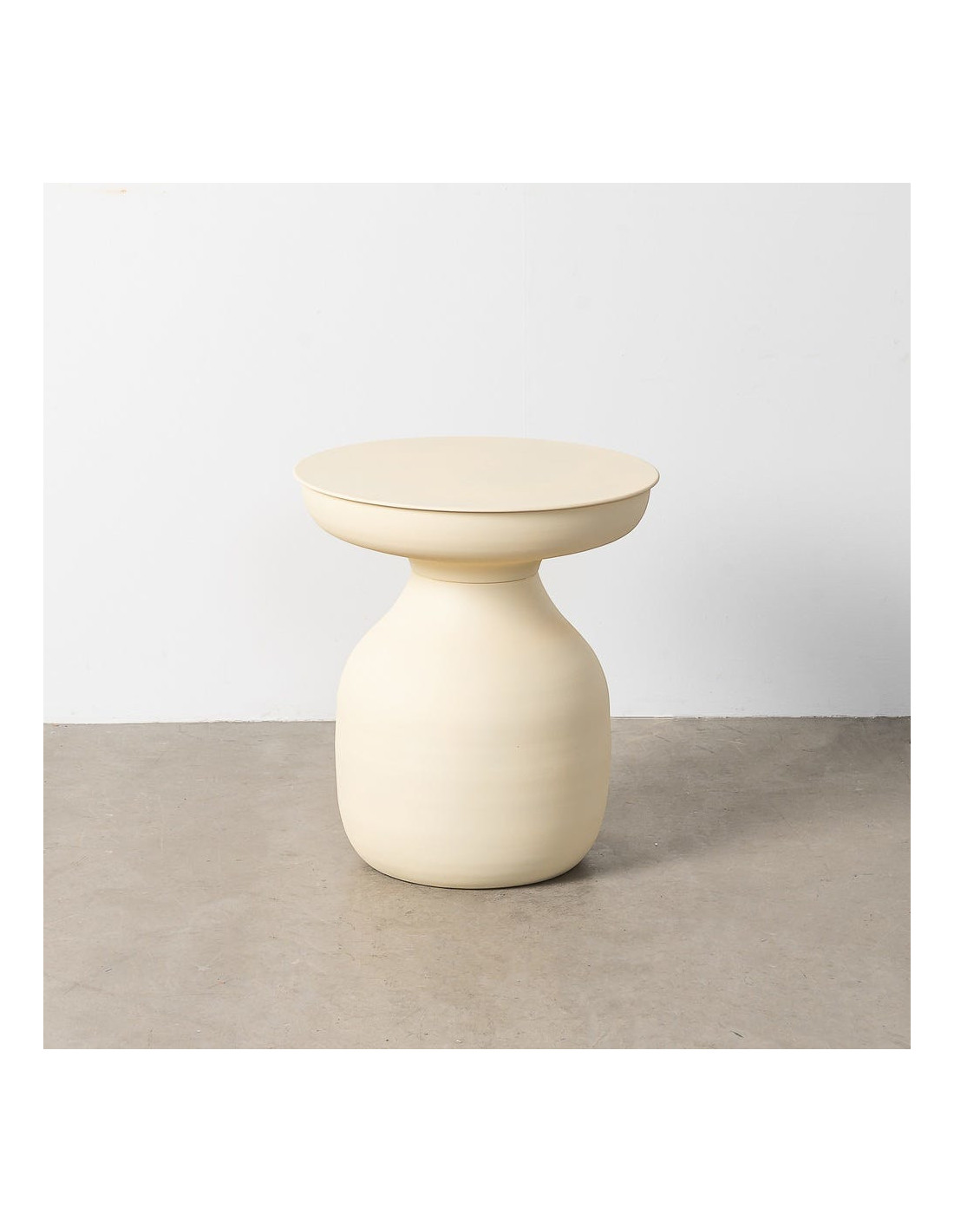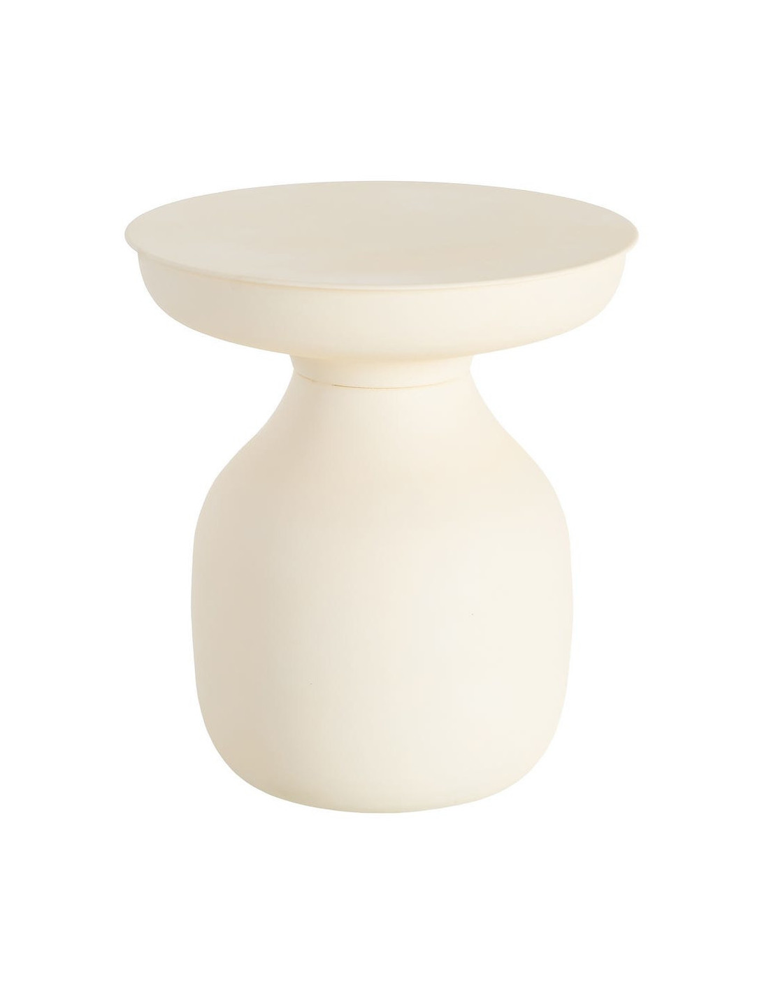 Table d'appoint ronde 46 cm en métal blanc cassé. Design organique et épuré. Montage simple. Forme généreuse et accueillante.