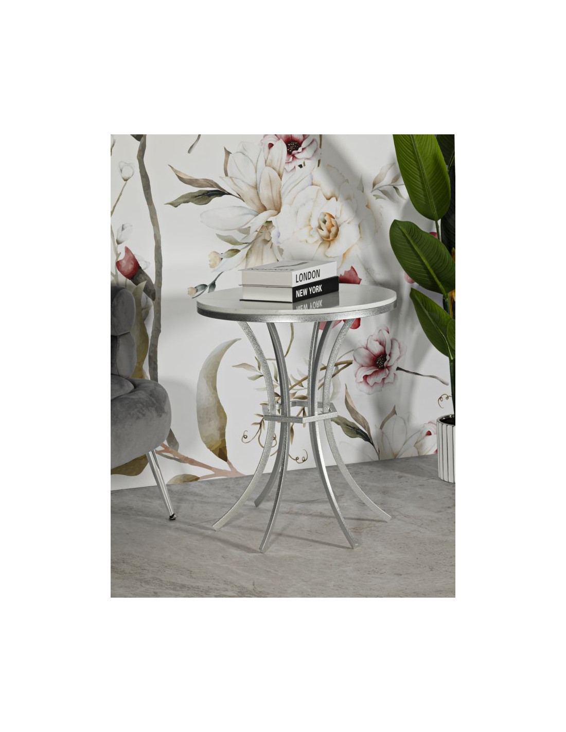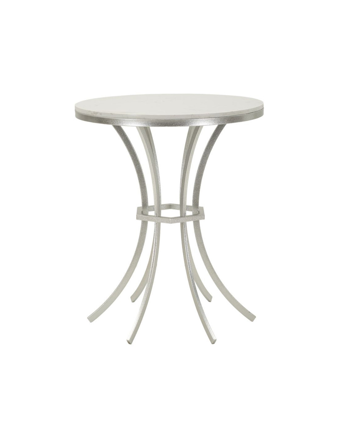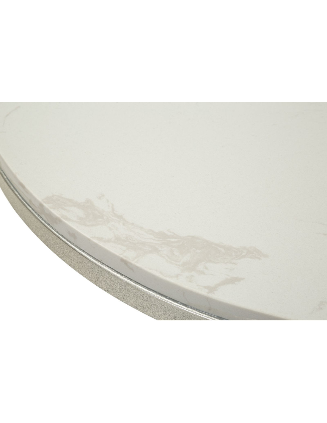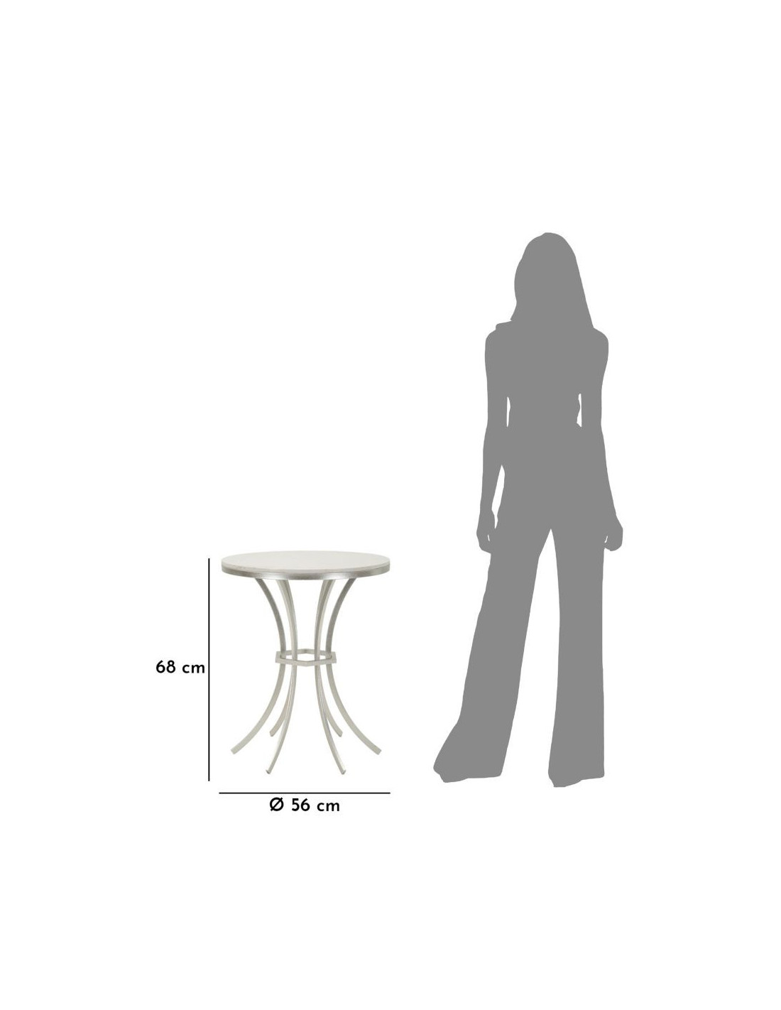 Table d'appoint orientale chic Ronde Marbre Blanc Métal Argenté Istanbul