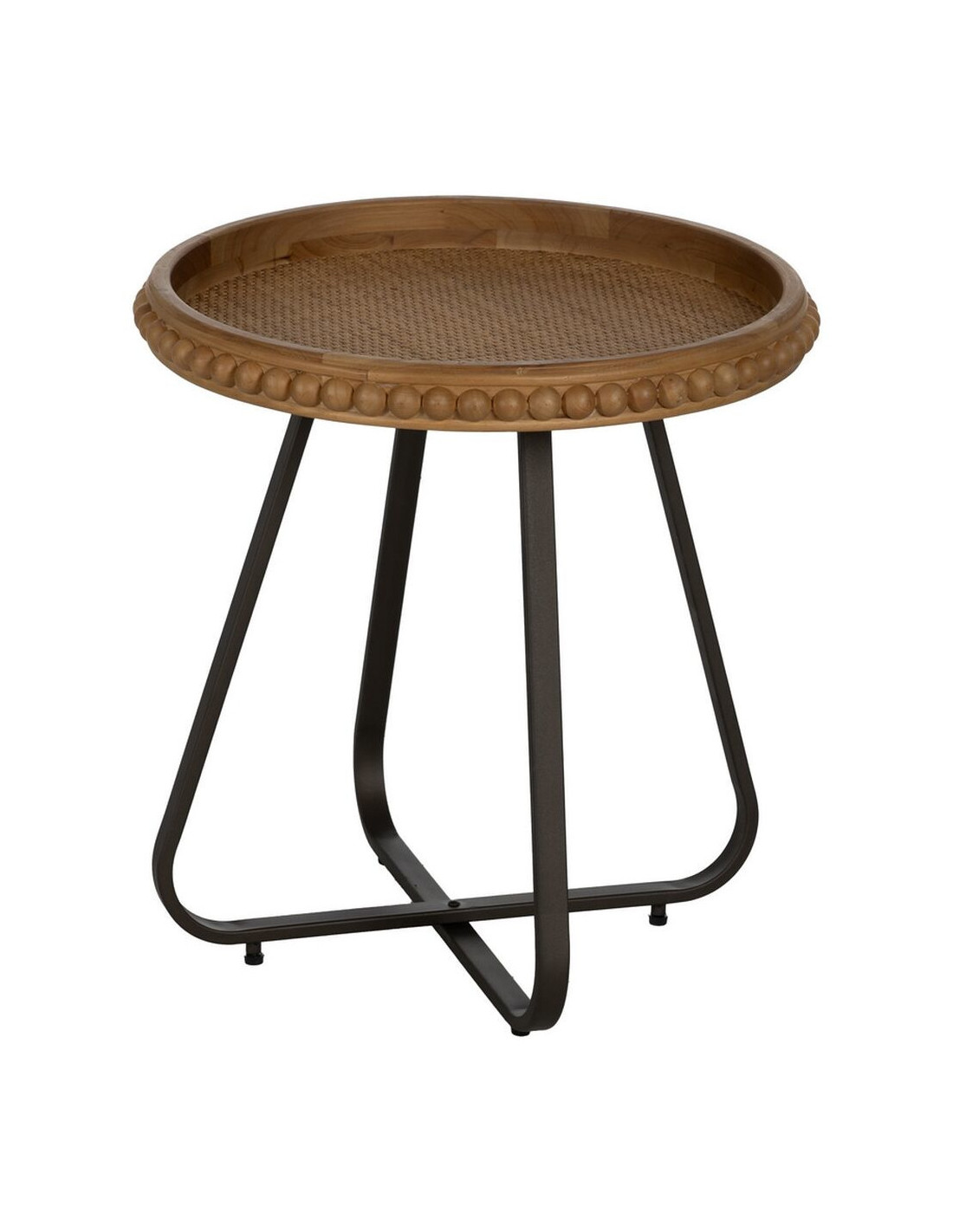 Table d'appoint originale Boules Ronde 52 cm en Bois de sapin Naturel Métal Noir Sabinan