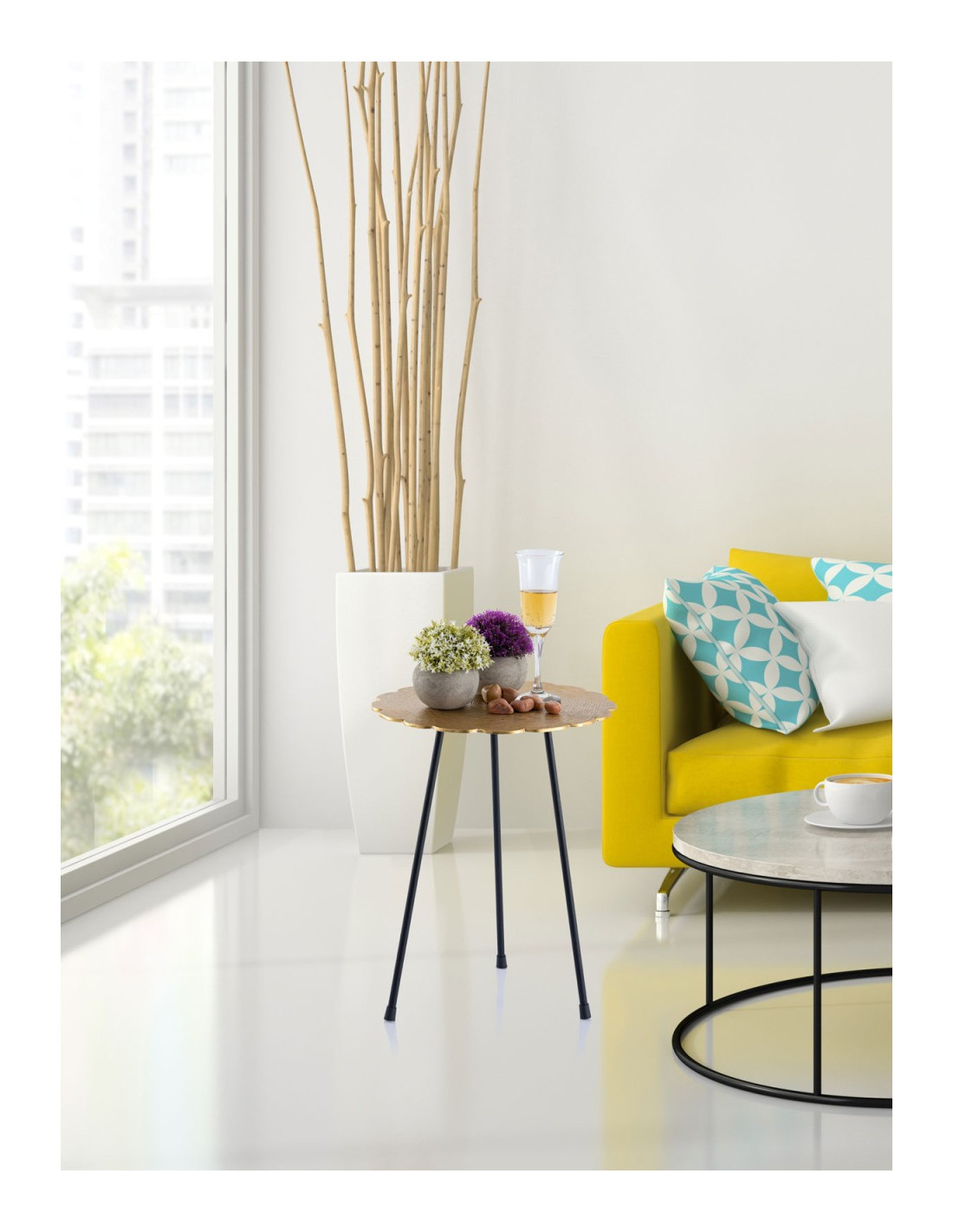Table d'appoint originale Fleur Ronde en Métal Doré Noir Vieilli Xevria