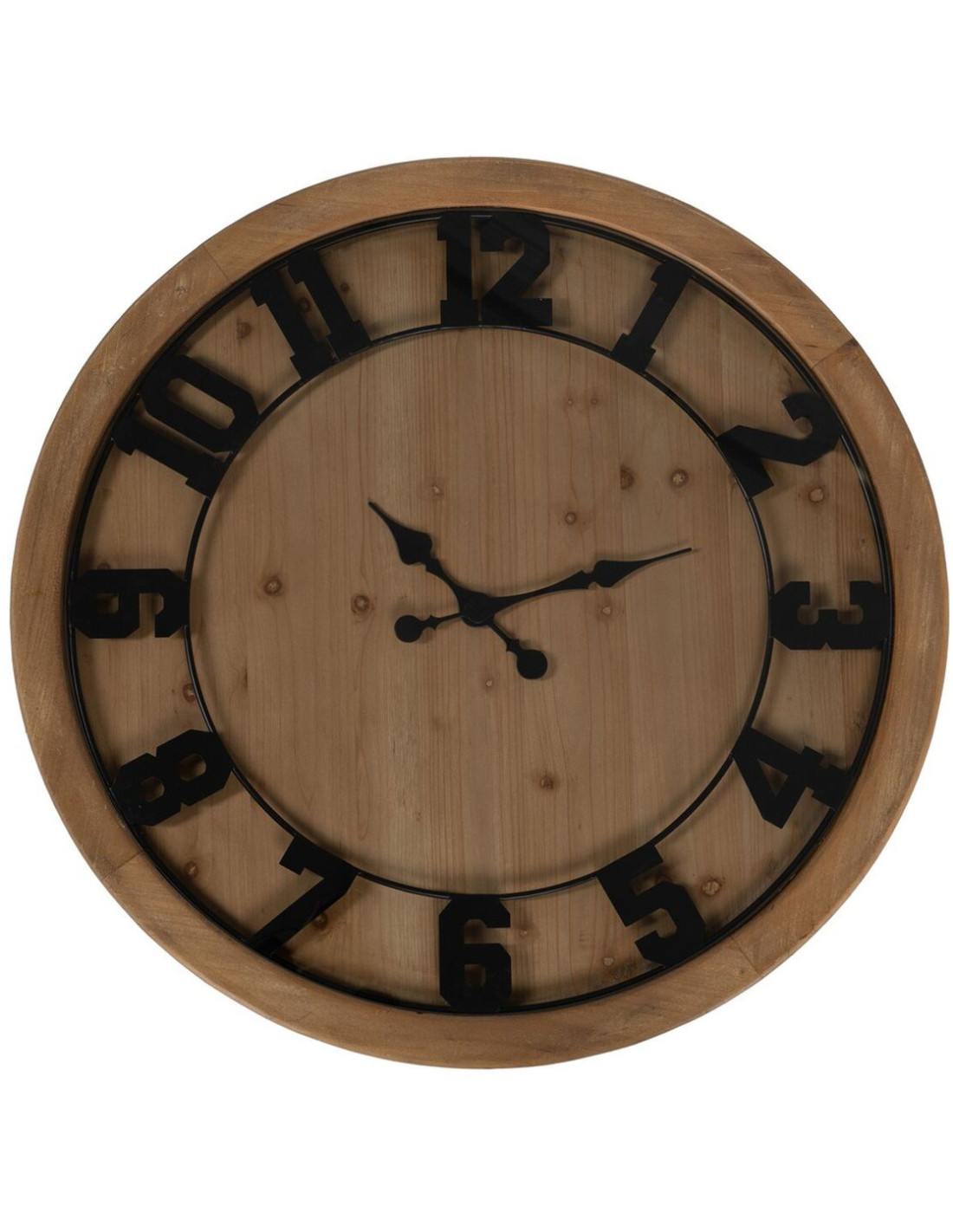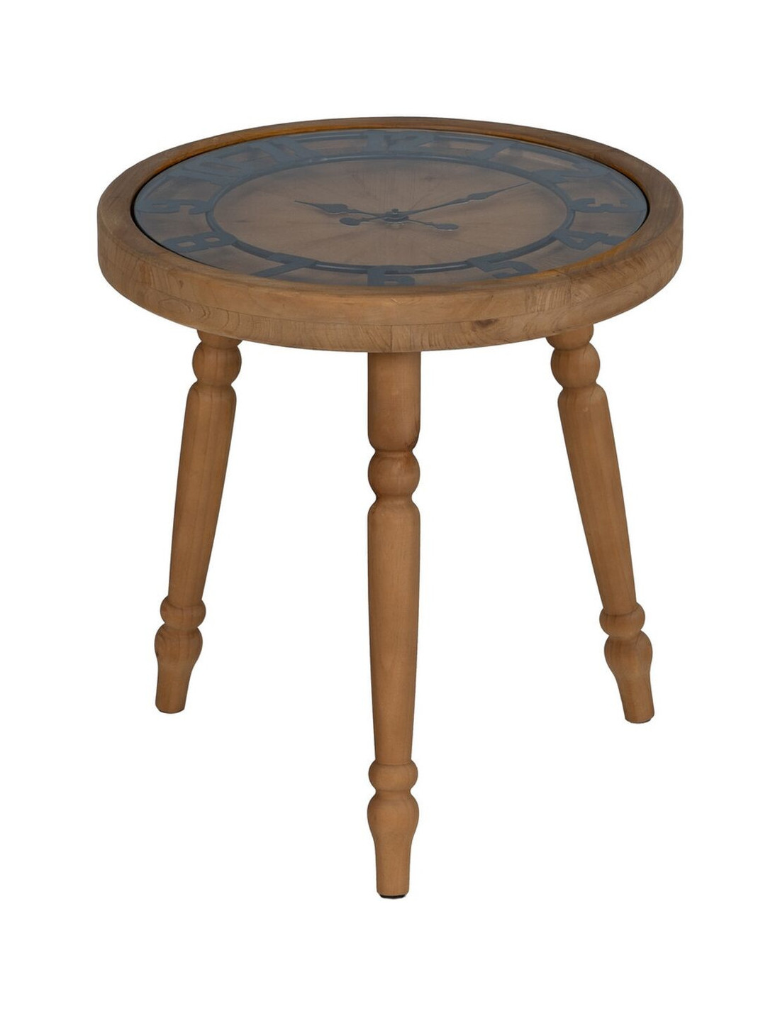 Table d'appoint originale Horloge Ronde en Bois de sapin Naturel Métal Noir Mivora