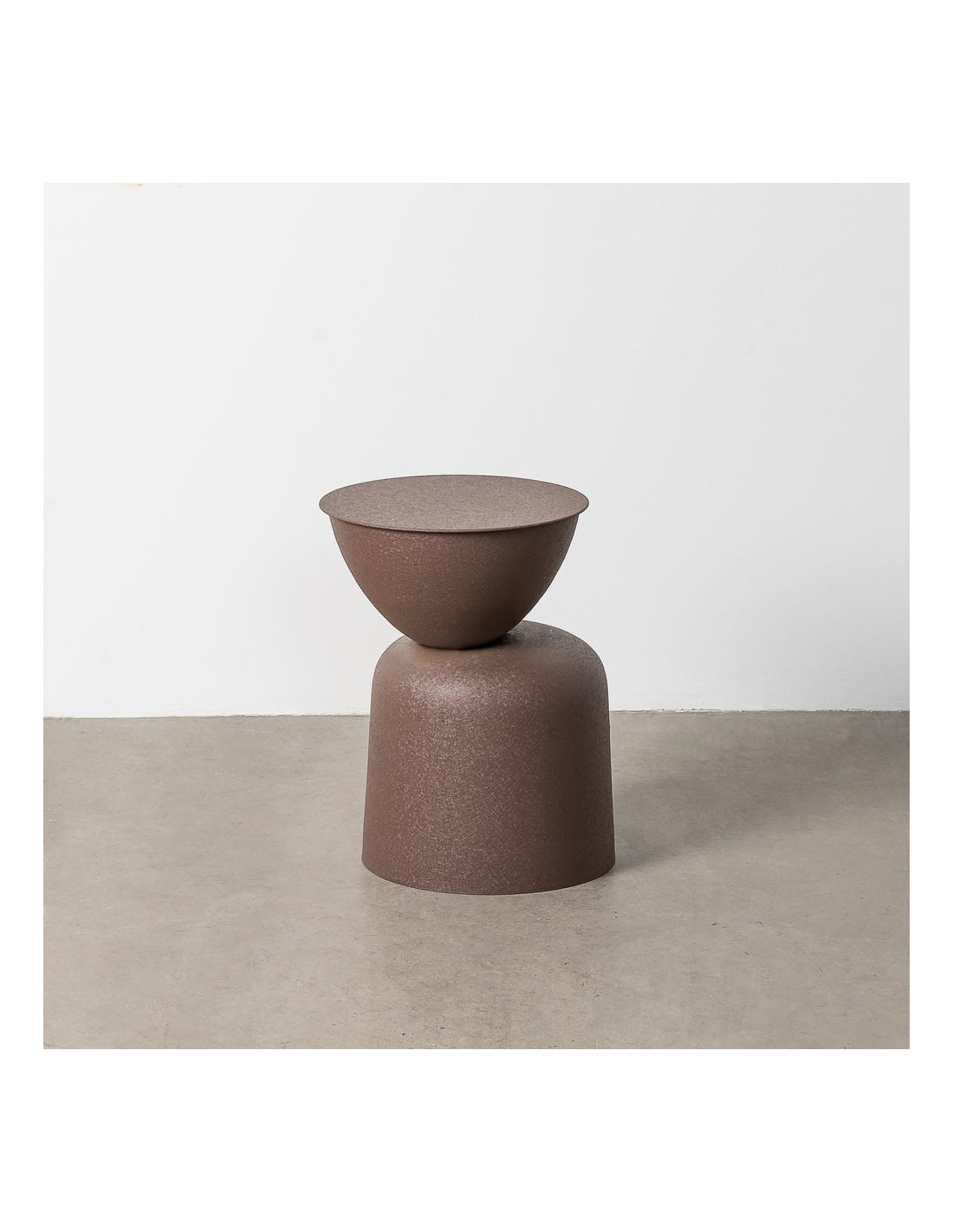 Table d'appoint originale moderne Ronde 36 cm Métal Marron Piedra
