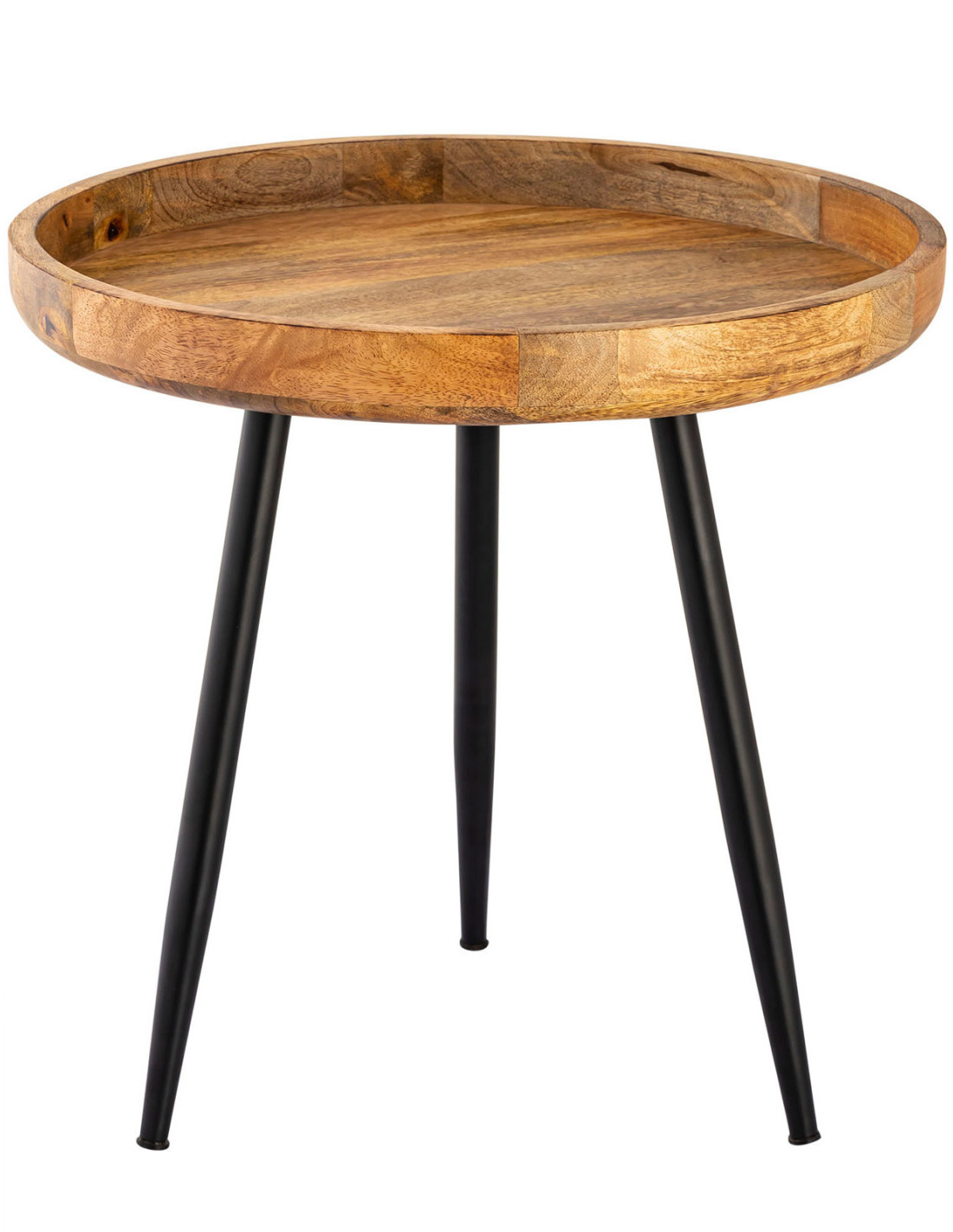 Table d'appoint Ronde 50 cm en Bois de manguier massif Naturel Métal Noir Vancouver