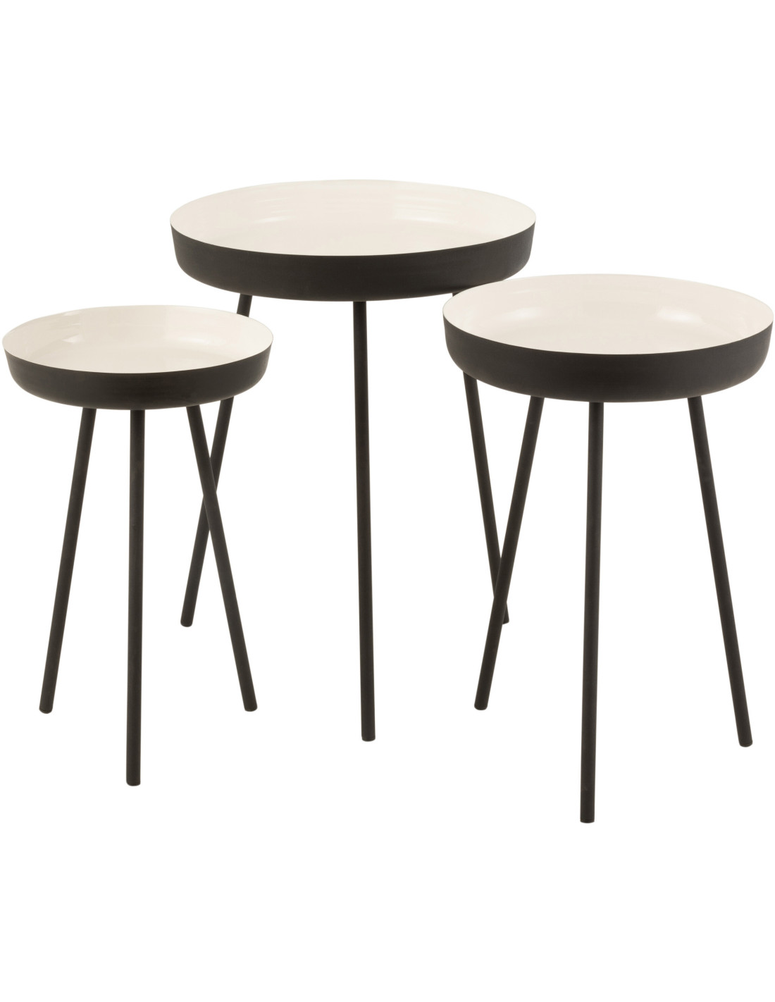 Table d'appoint Gigogne Ronde Dex en Métal Noir Blanc (Lot de 3)