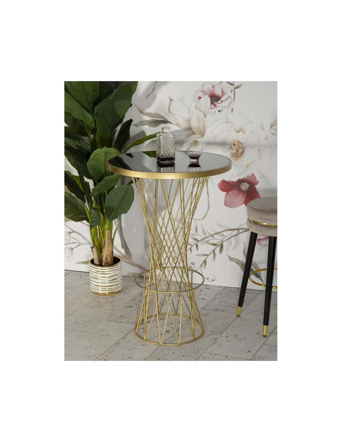 Table de bar haute moderne chic Ronde 2 personnes Verre Noir Métal Doré Tower