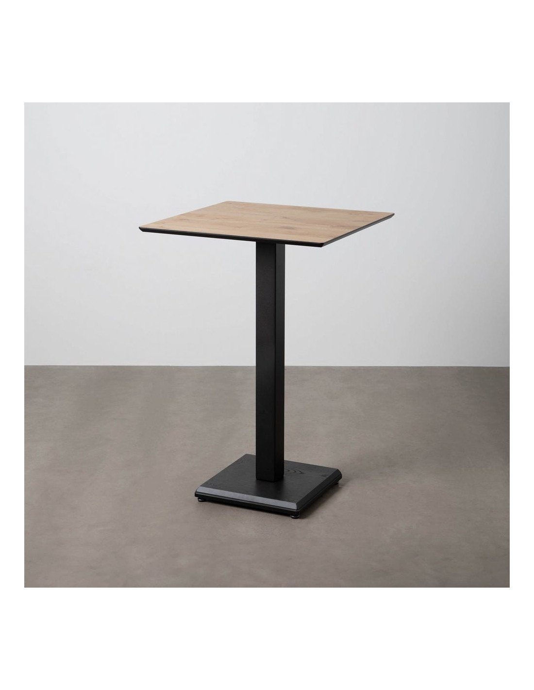 Table haute bistrot moderne Carrée 4 personnes en Métal Noir Bois MDF Naturel Alaro - 1