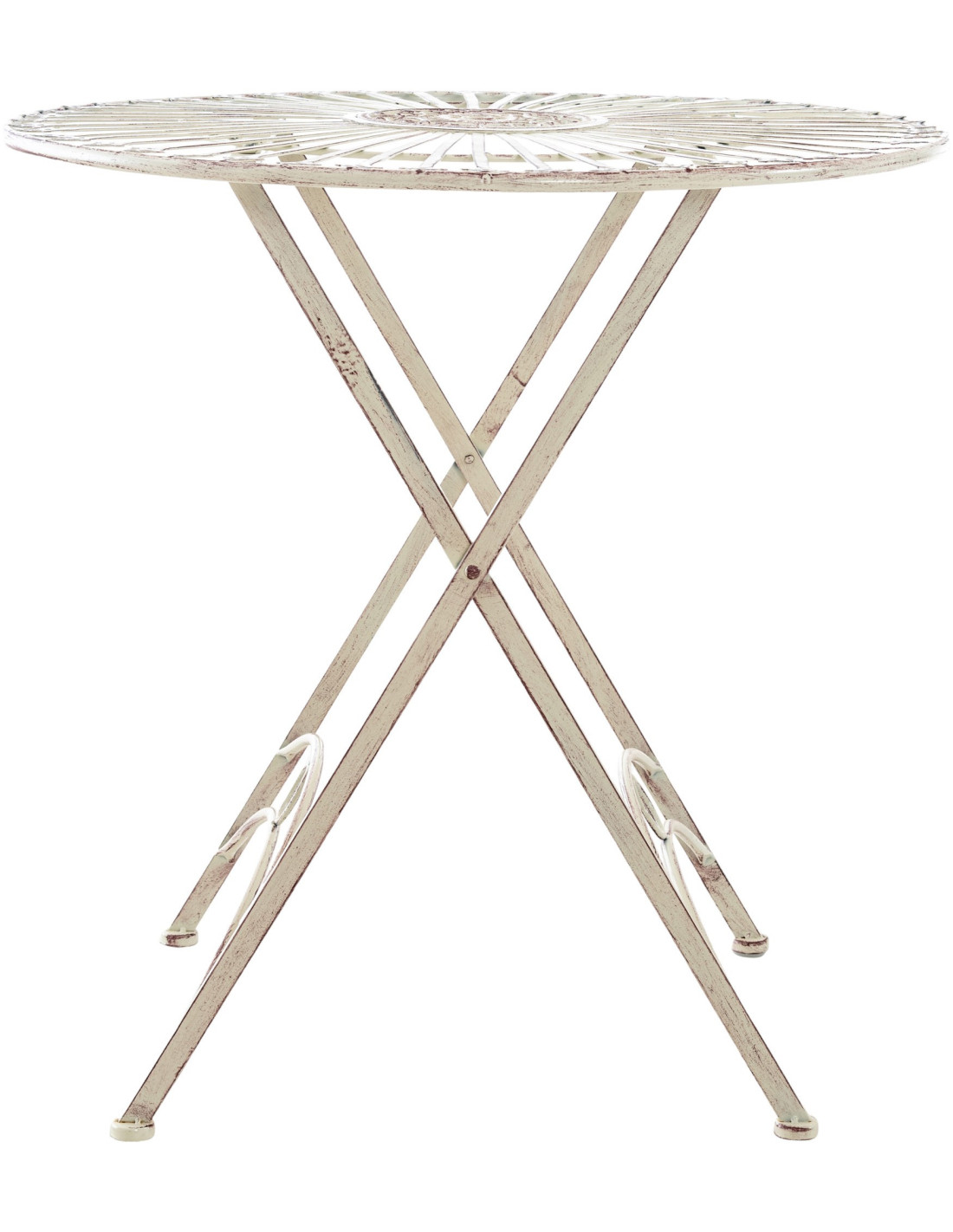 Table pour terrasse Ronde 2 personnes en Fer forgé Crème vieilli Heloise - 6