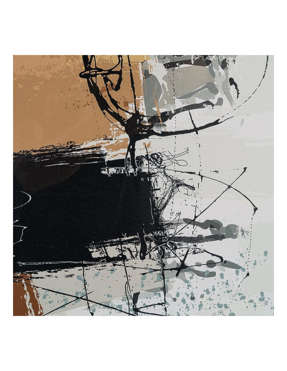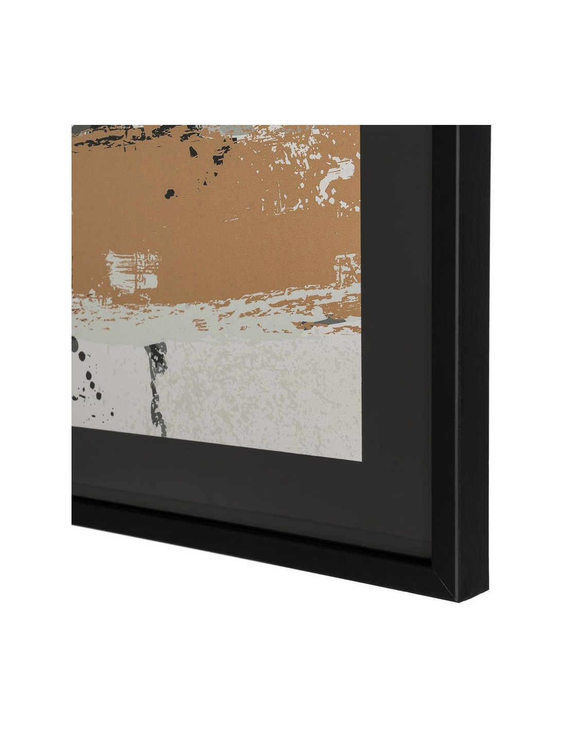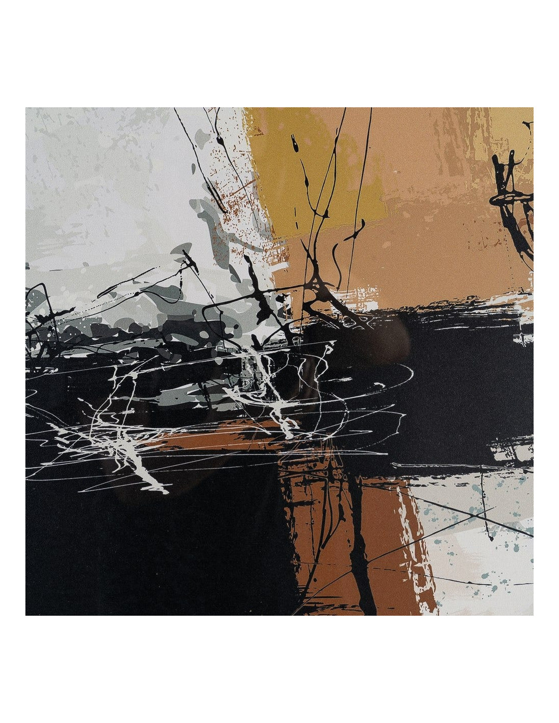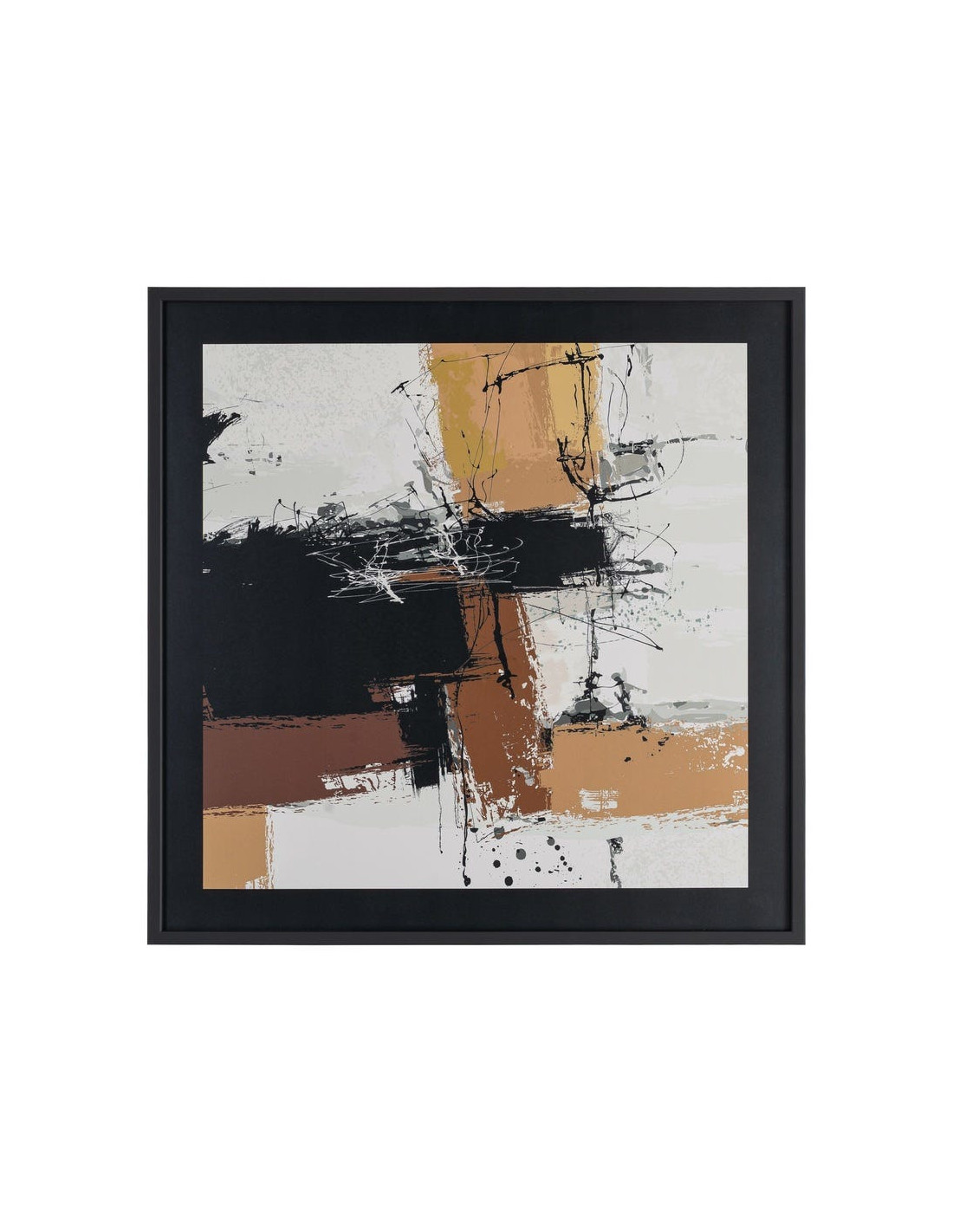 Tableau mural sous verre abstrait Noir Marron & Ocre Cadre MDF noir 73x73 Osvin
