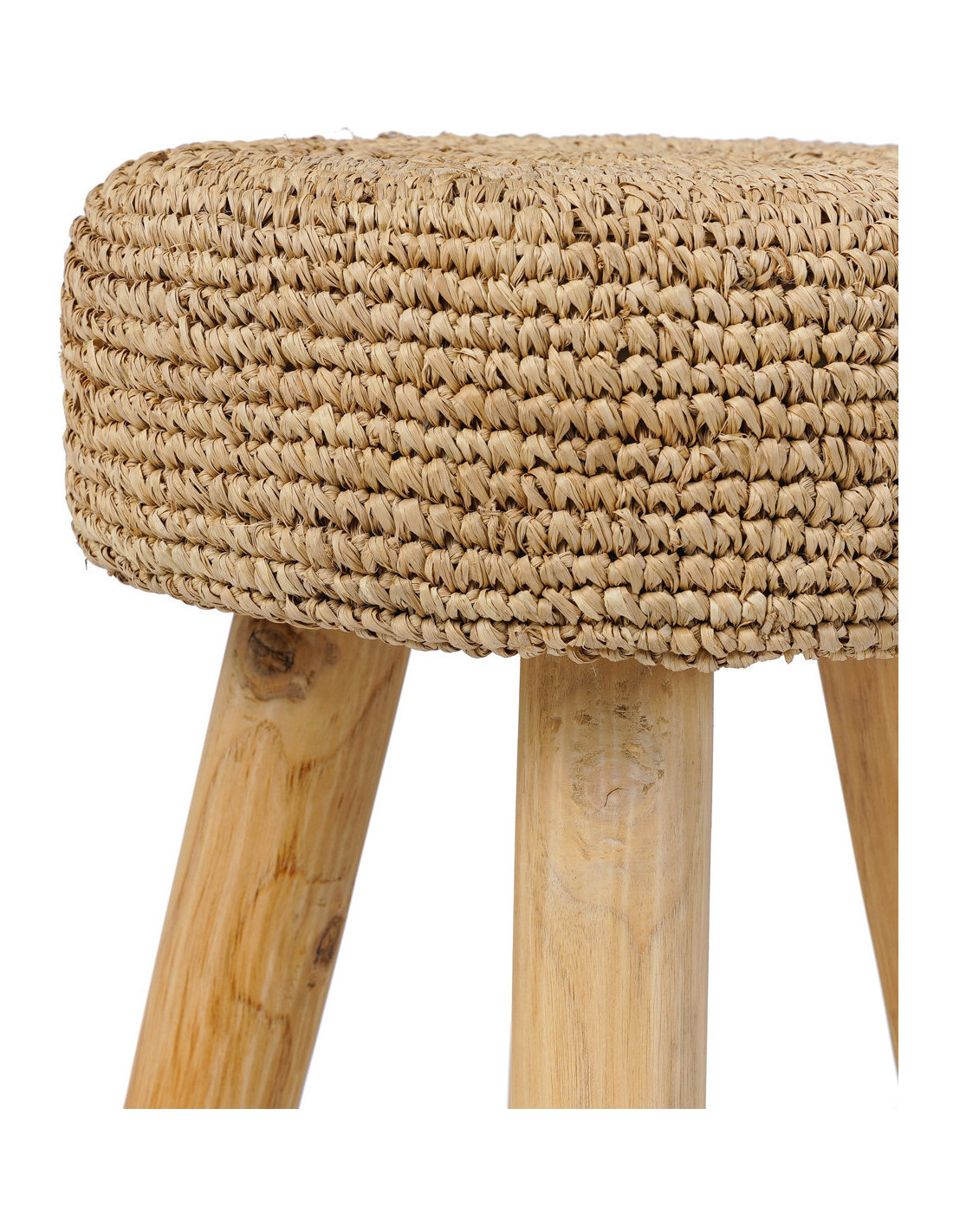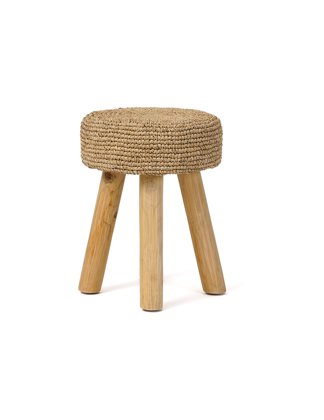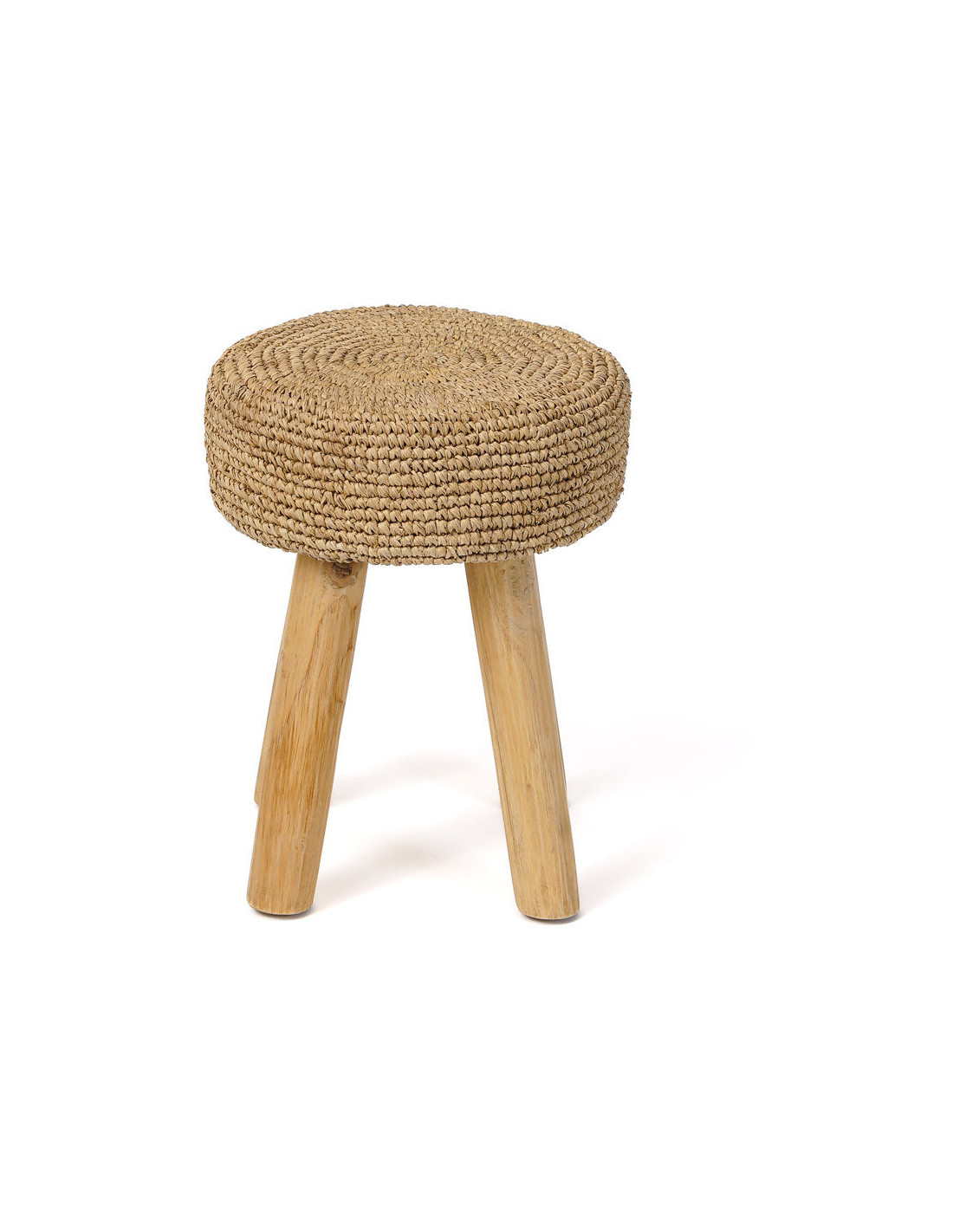 Tabouret Bohème chic Rond en Bois de teck Raphia Naturel The Raphia
